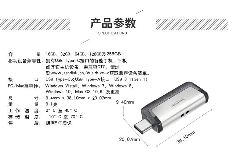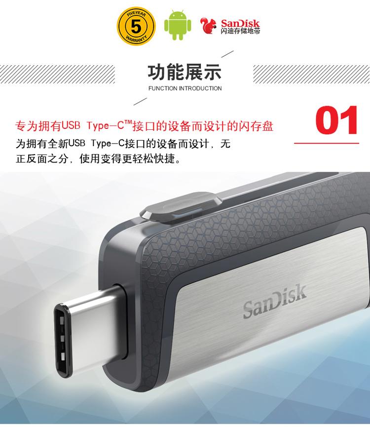 閃迪(SanDisk) 256GB Type-C USB3.1 手機(jī)電腦U盤DDC2 讀速150MB/s 便攜伸縮雙接口