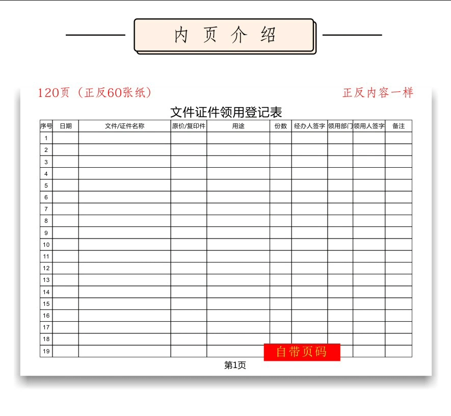 成文厚 文件證件領(lǐng)用登記本 A4(120頁)
