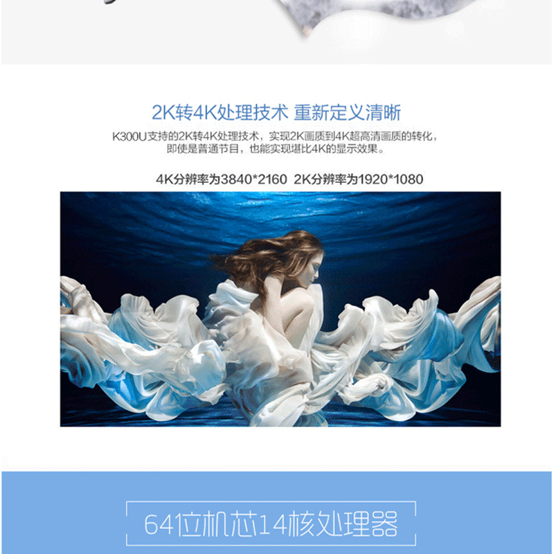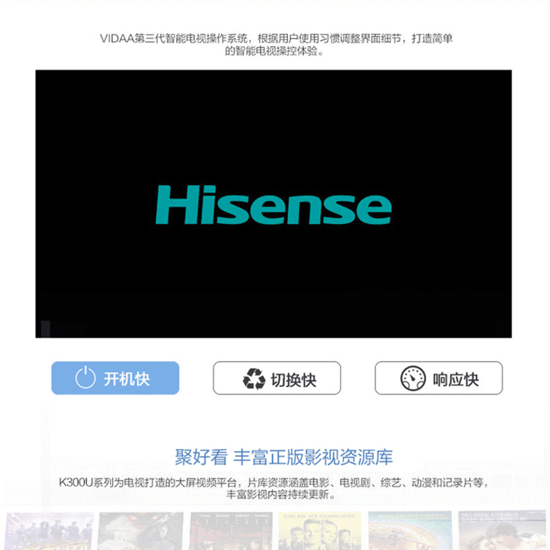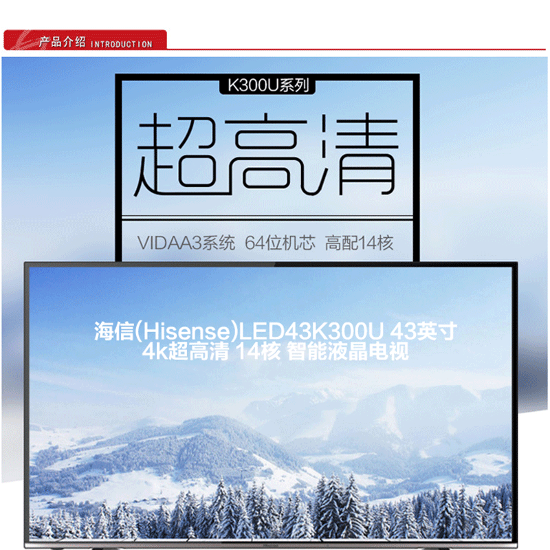 海信(Hisense) LED43K300U 43英寸 智能液晶電視 4k超高清 14核