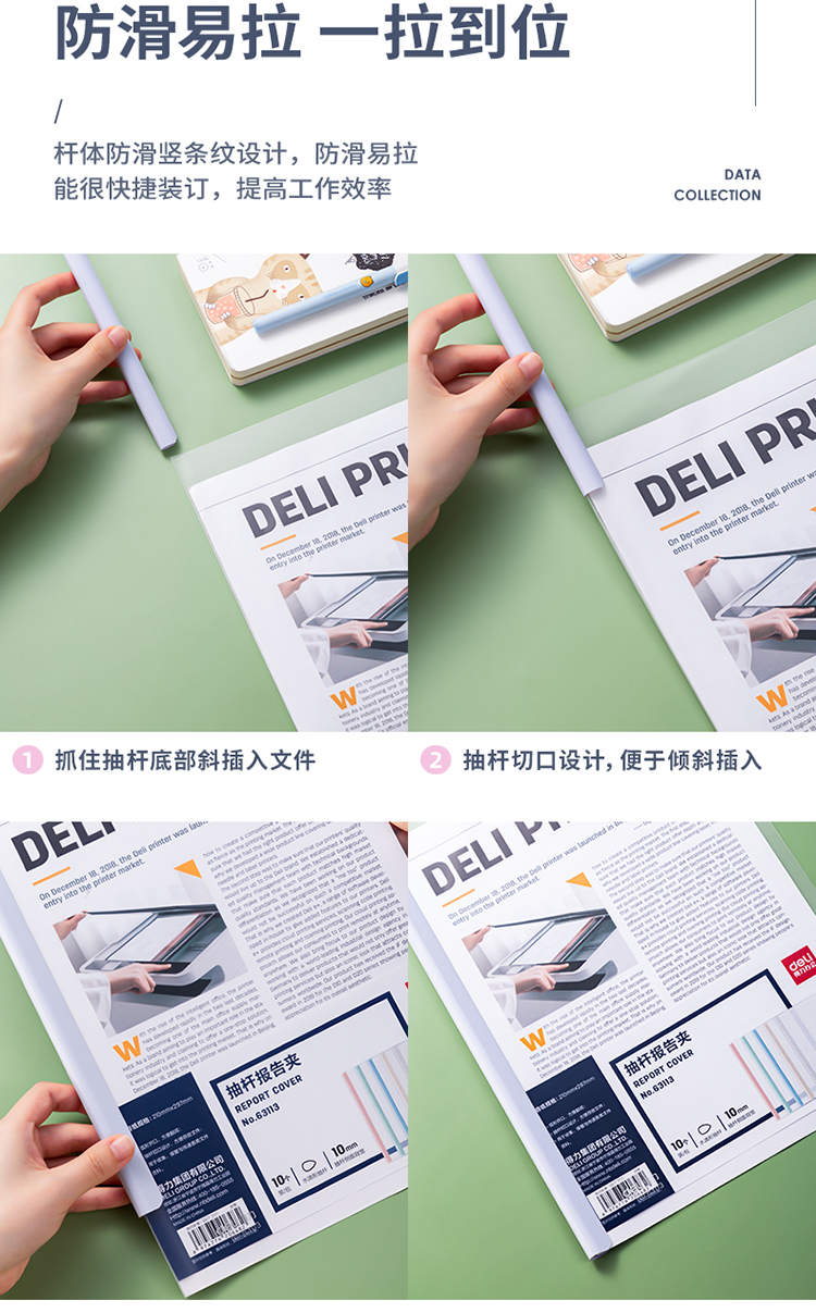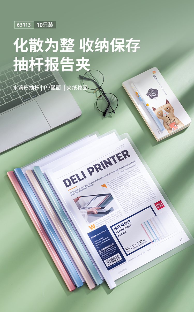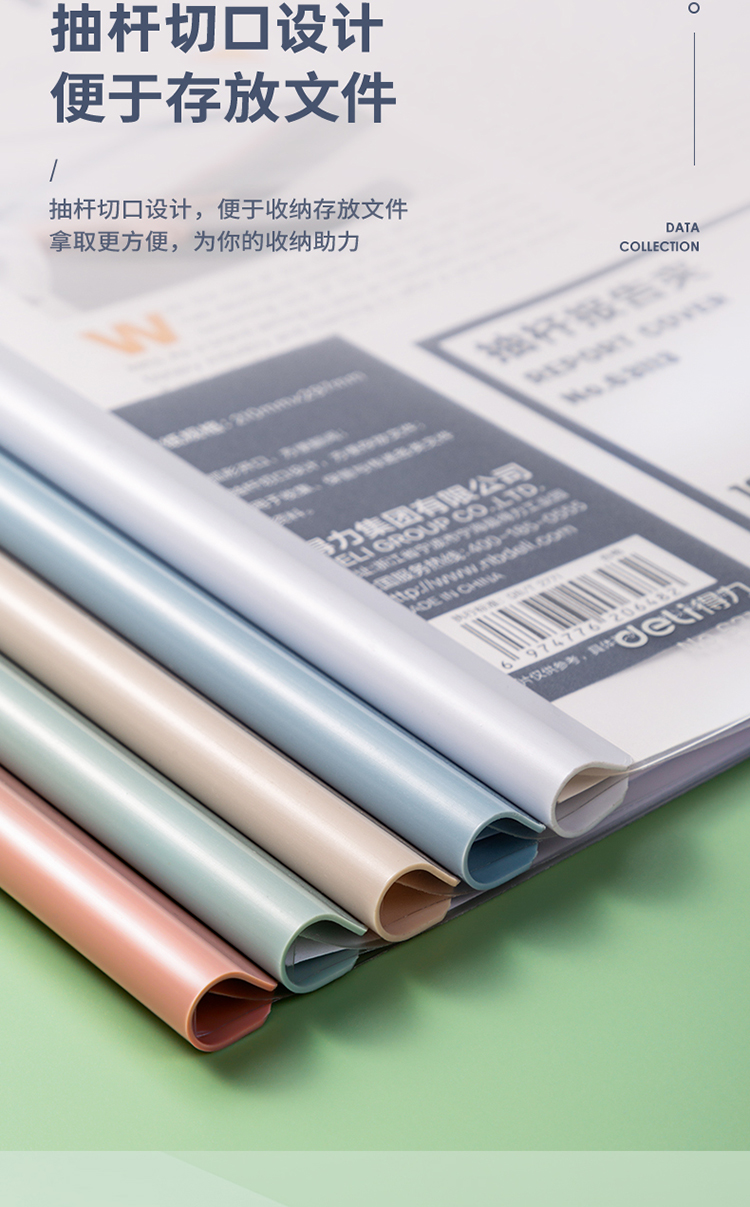 得力(deli)10只A4透明抽桿文件夾拉桿夾水滴桿 莫蘭迪色系63113