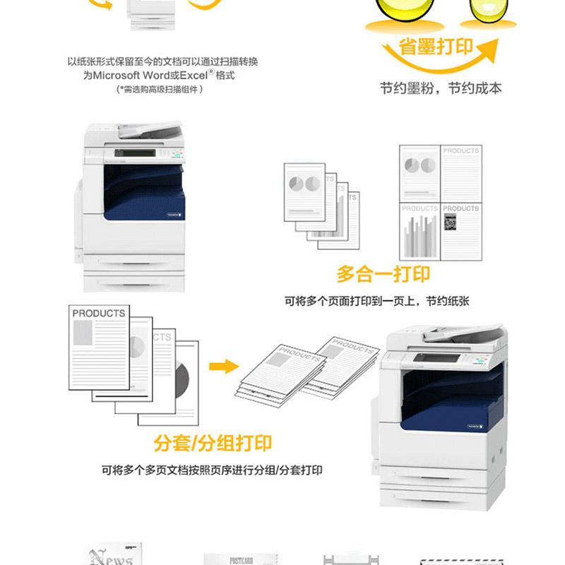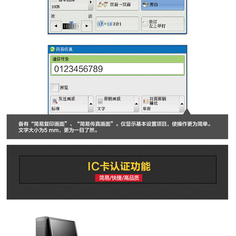 標配:雙紙盒、雙面輸稿器。復印打印速度:25頁/分鐘。 ?