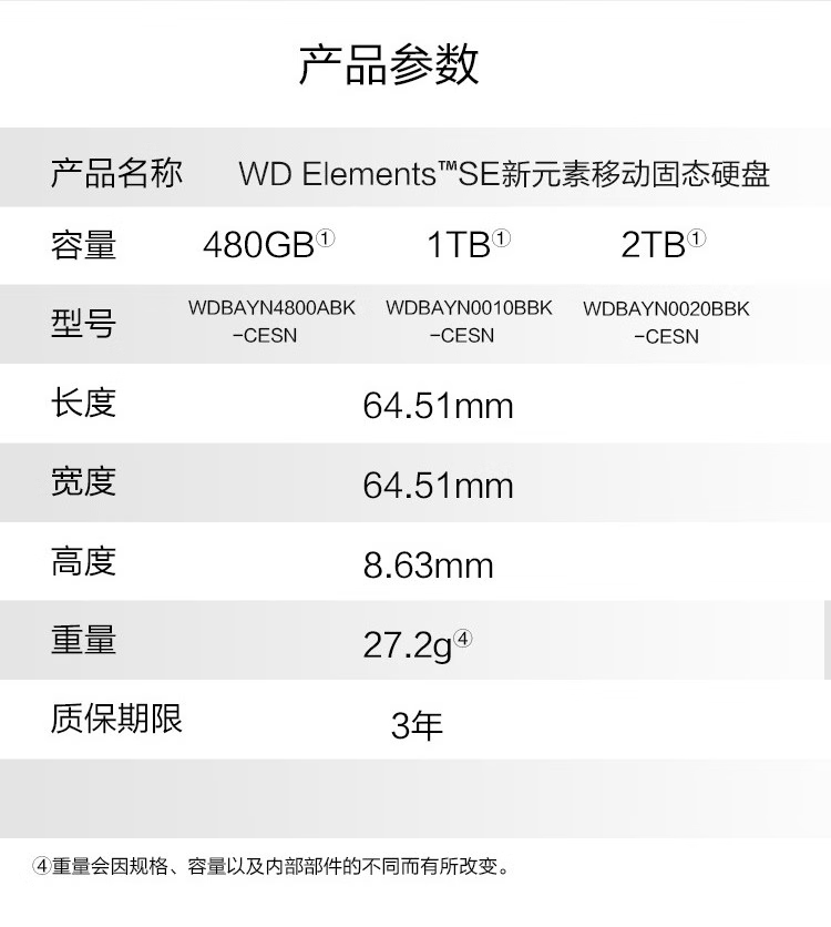 西部數(shù)據(jù)(WD)移動(dòng)硬盤(pán)(PSSD)Elements 2TB【云錦天章】USB3.0接口WDBAYN0020BBK-CESN