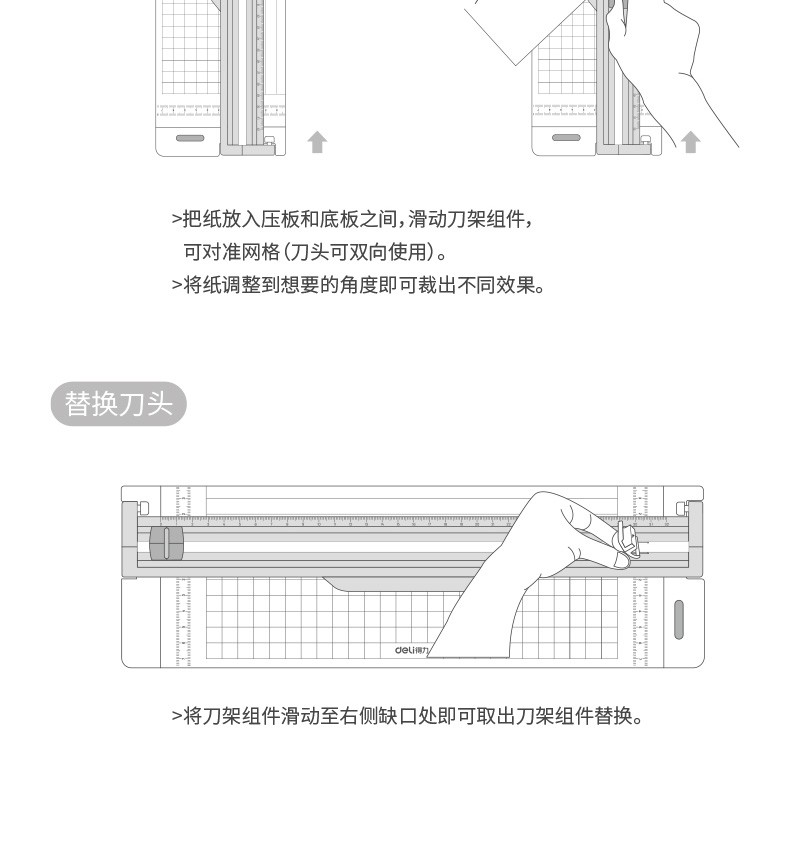 得力(deli)裁紙刀 手動切紙刀雙向刀頭A4便攜小型裁紙器14251