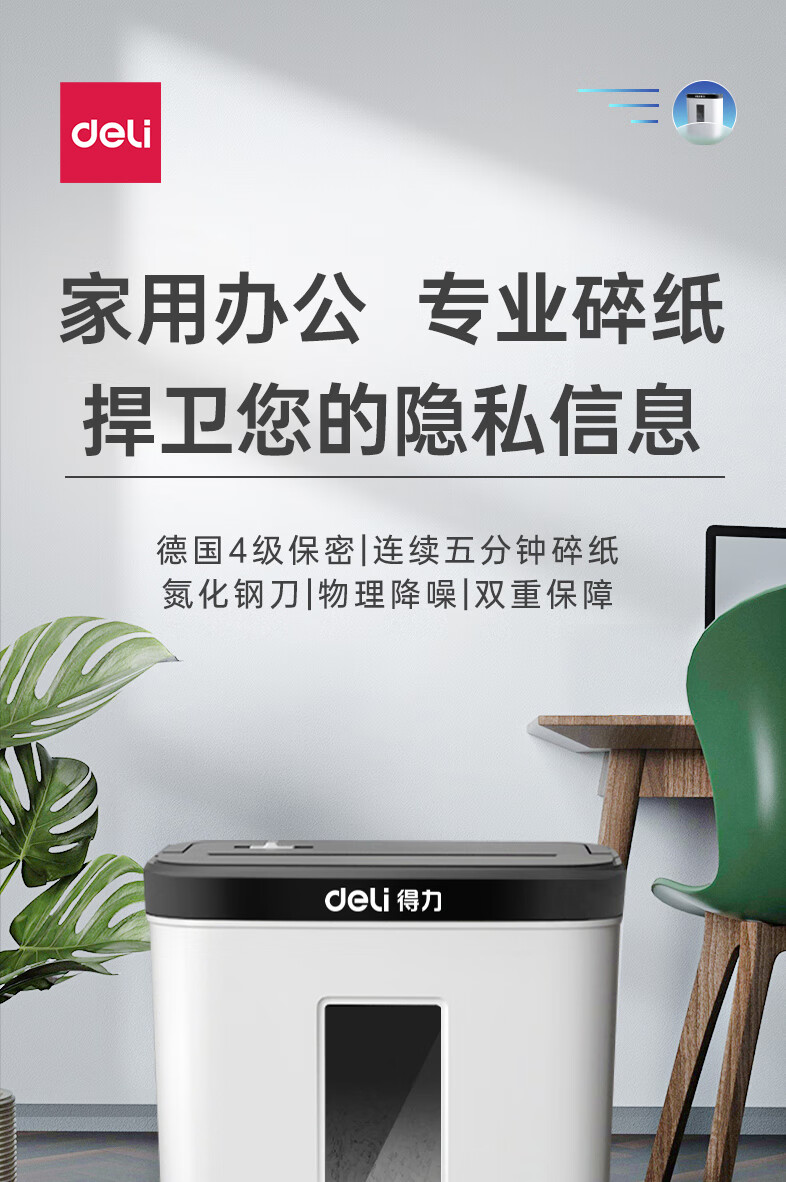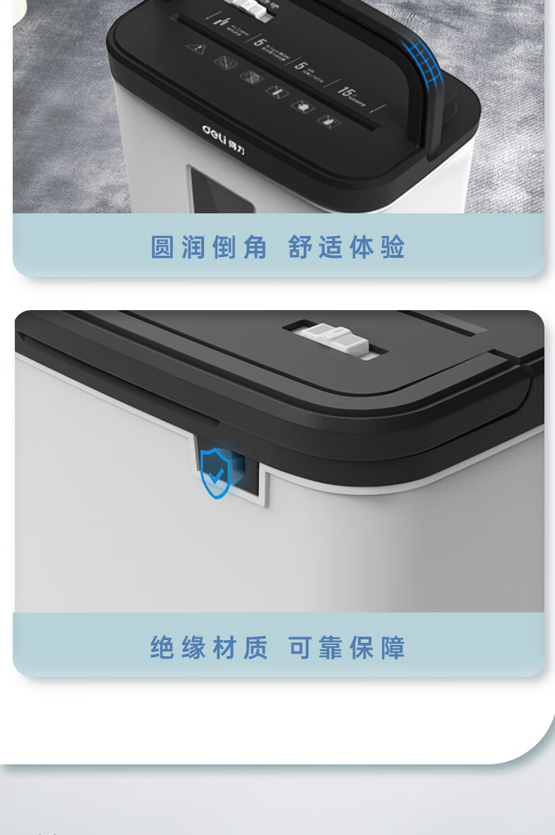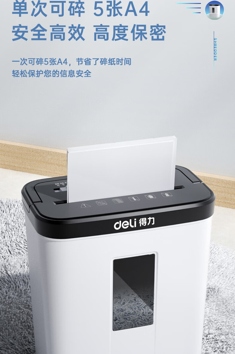 得力(deli)碎紙機 4級高保密(單次5張 15L 持續(xù)5分鐘 可碎卡)9939