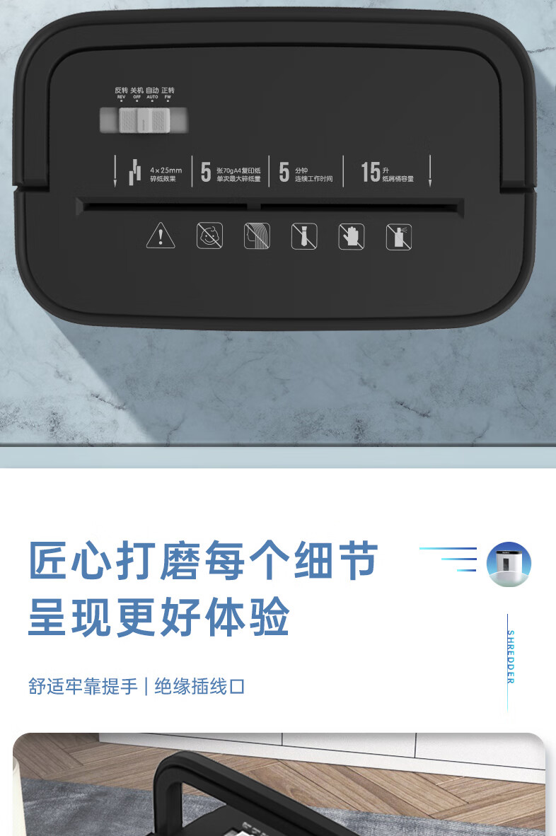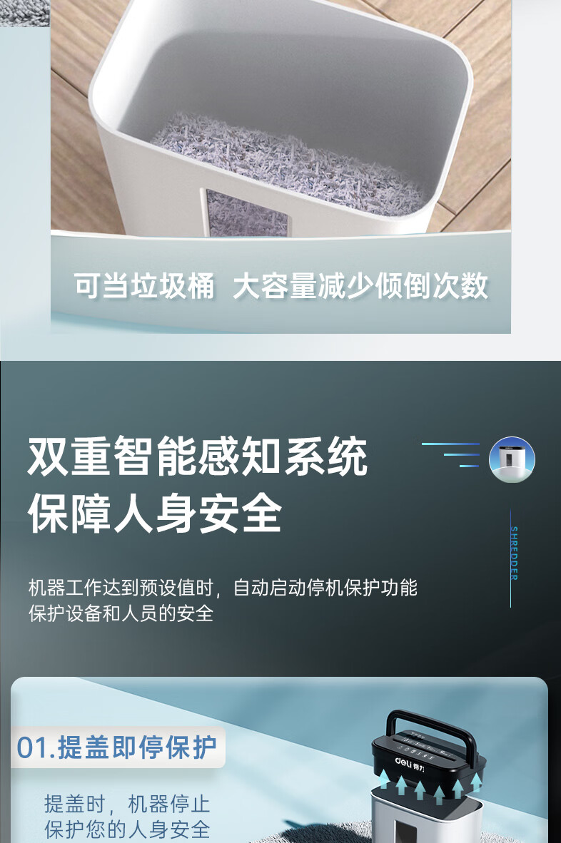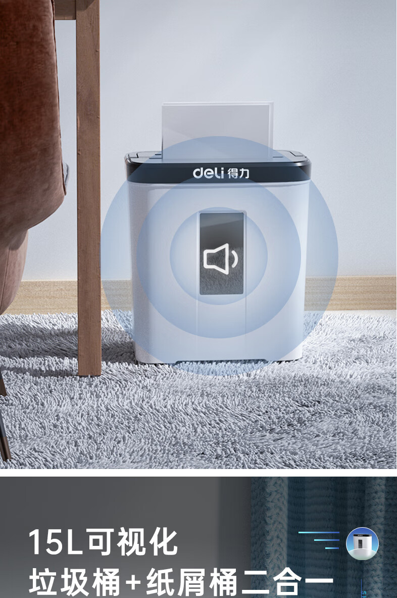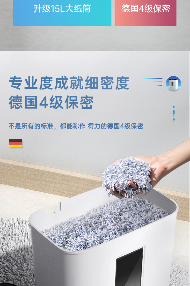 得力(deli)碎紙機 4級高保密(單次5張 15L 持續(xù)5分鐘 可碎卡)9939