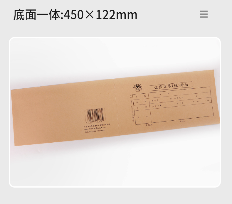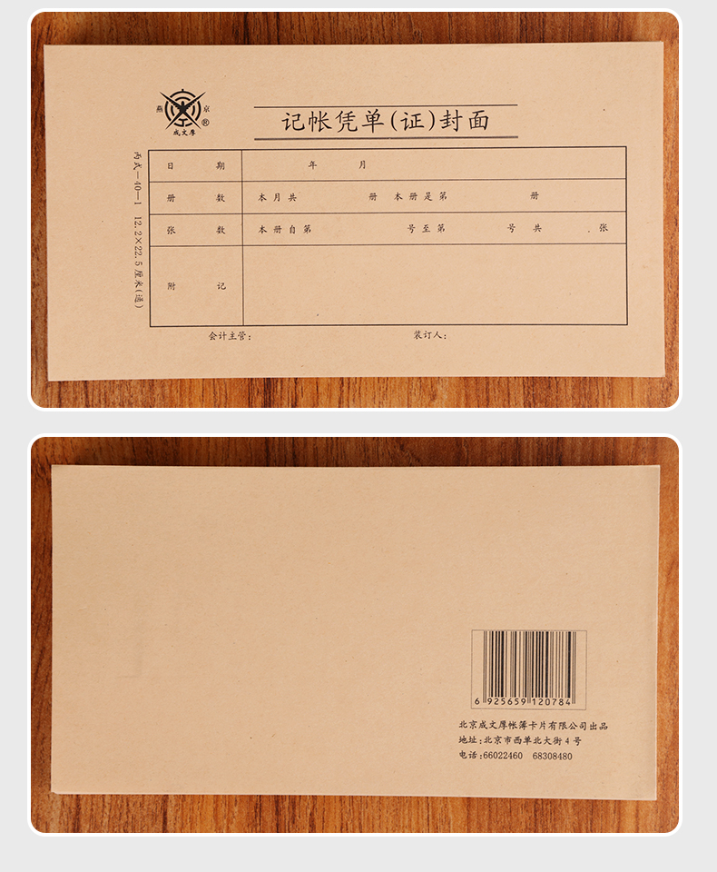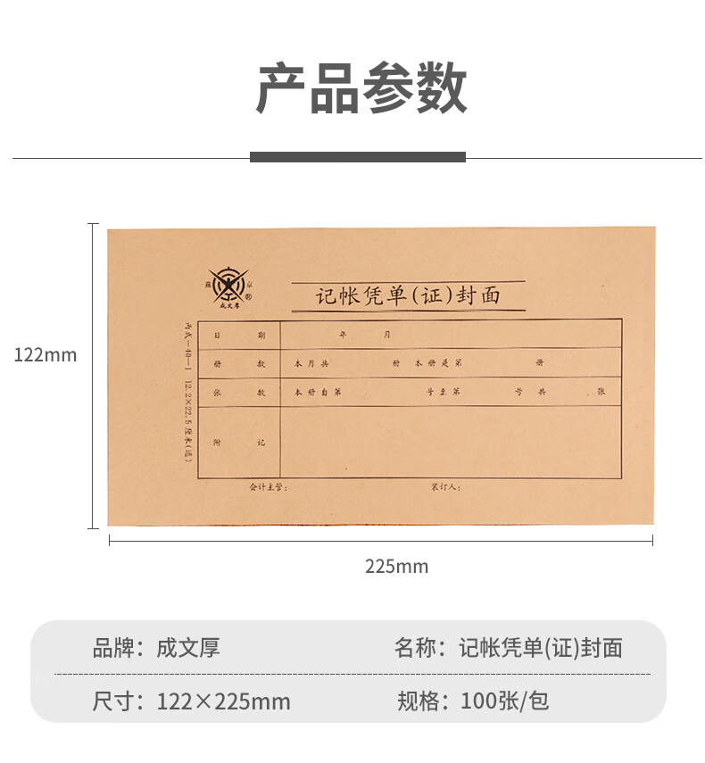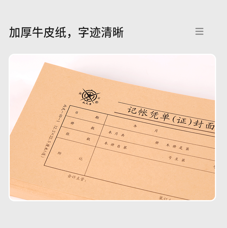 成文厚 財(cái)務(wù)用品憑證單據(jù) 記帳憑證封面丙式12.2*22.5cm 100張/包 308-40-1