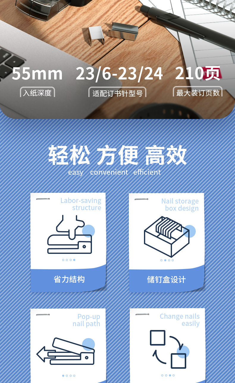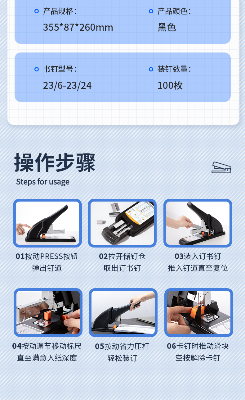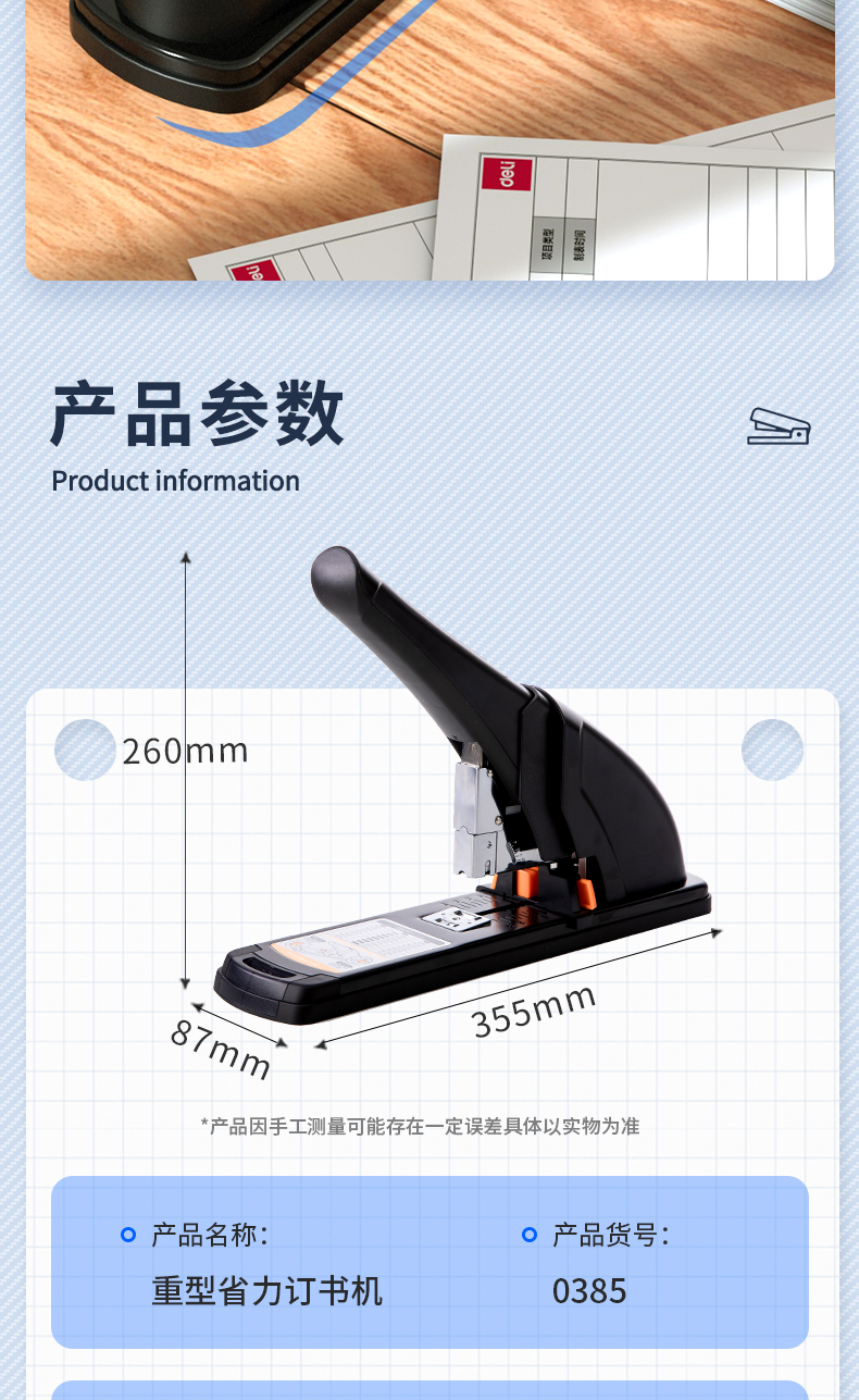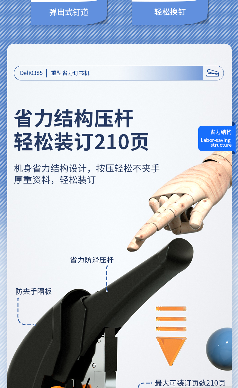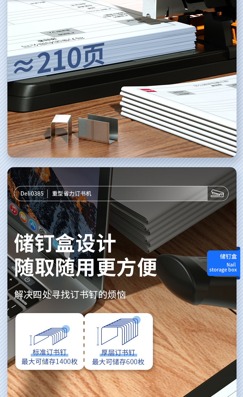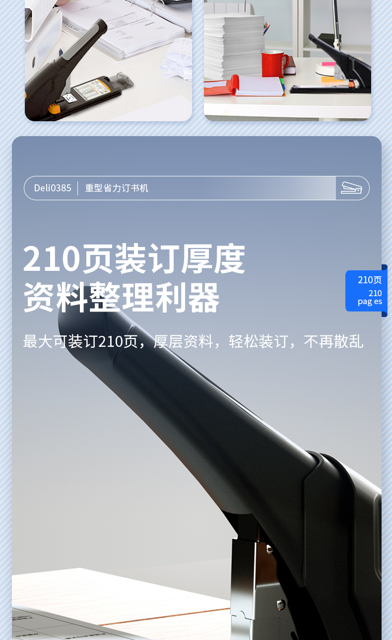得力(deli)210頁省力重型大訂書機(jī)/訂書器 黑色0385