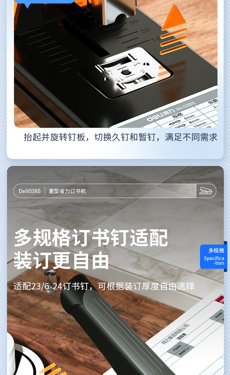 得力(deli)雙電源電動訂書機(jī) 適配24/6或26/6訂書釘 辦公用品 白色 TA750