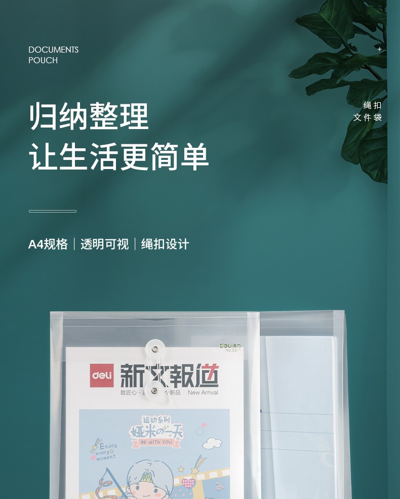 得力(deli) 透明文件袋A4檔案資料袋 12只pp防水檔案袋5910