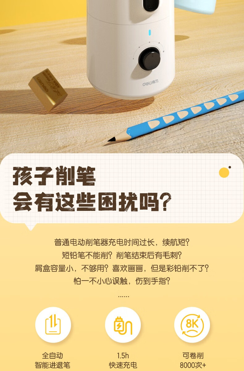 得力(deli)全自動(dòng)電動(dòng)削筆器 藍(lán)色VA8