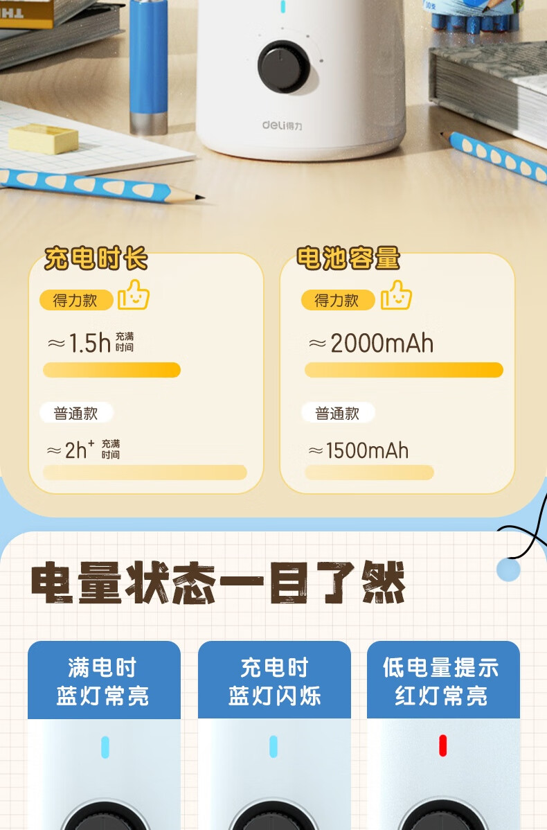 得力 桌面吸塵器電動(dòng)橡皮擦屑清潔器 淺藍(lán)/手提充電款18890