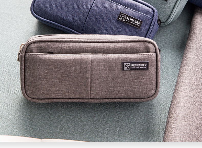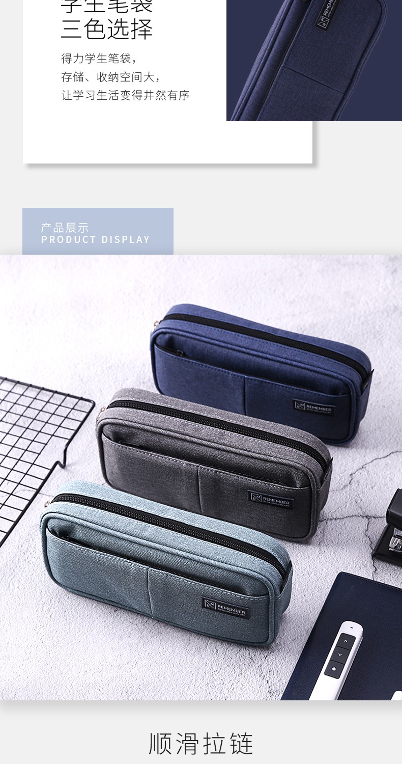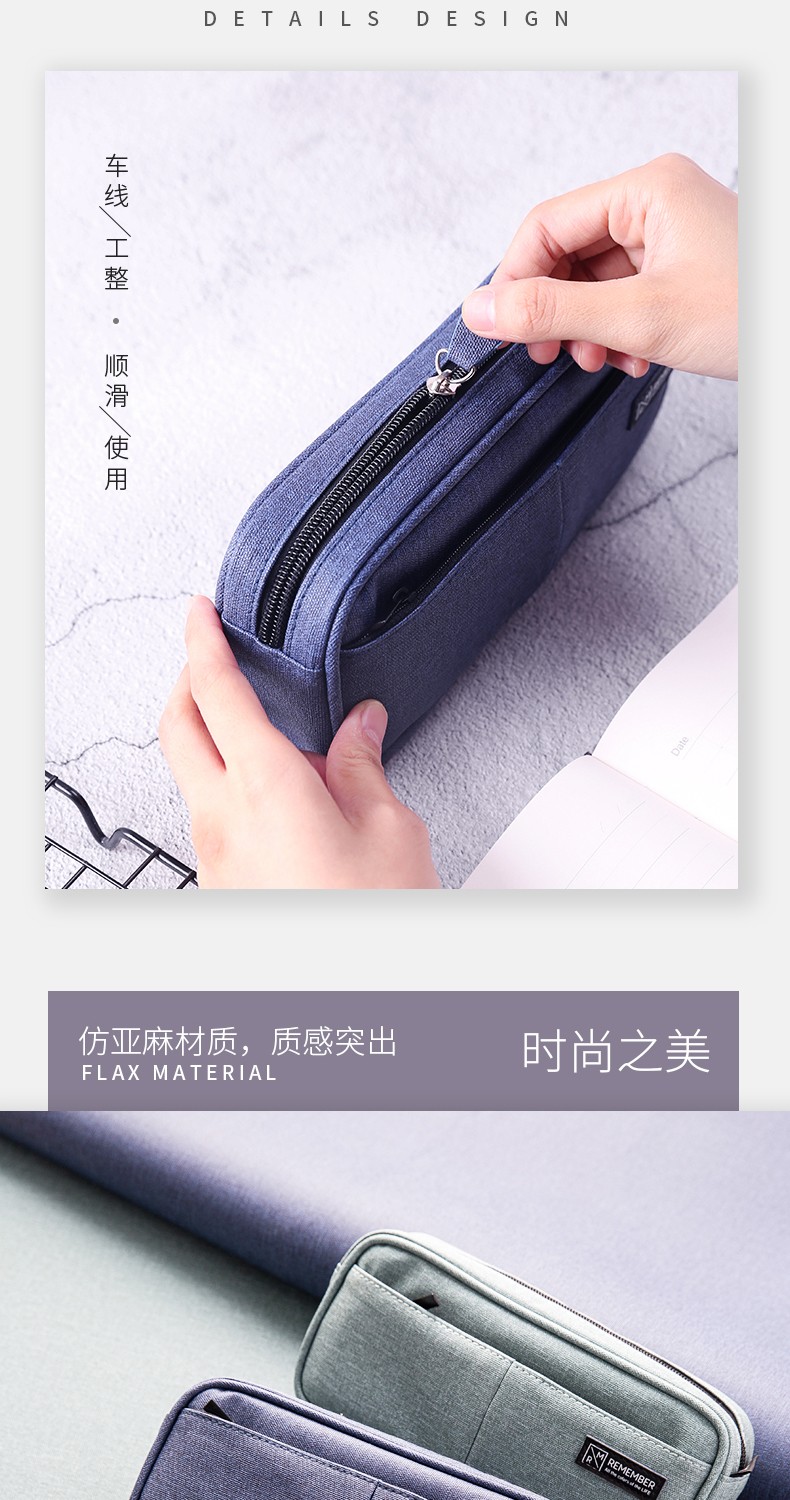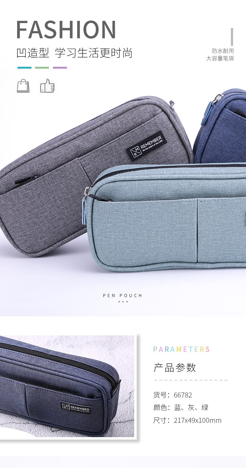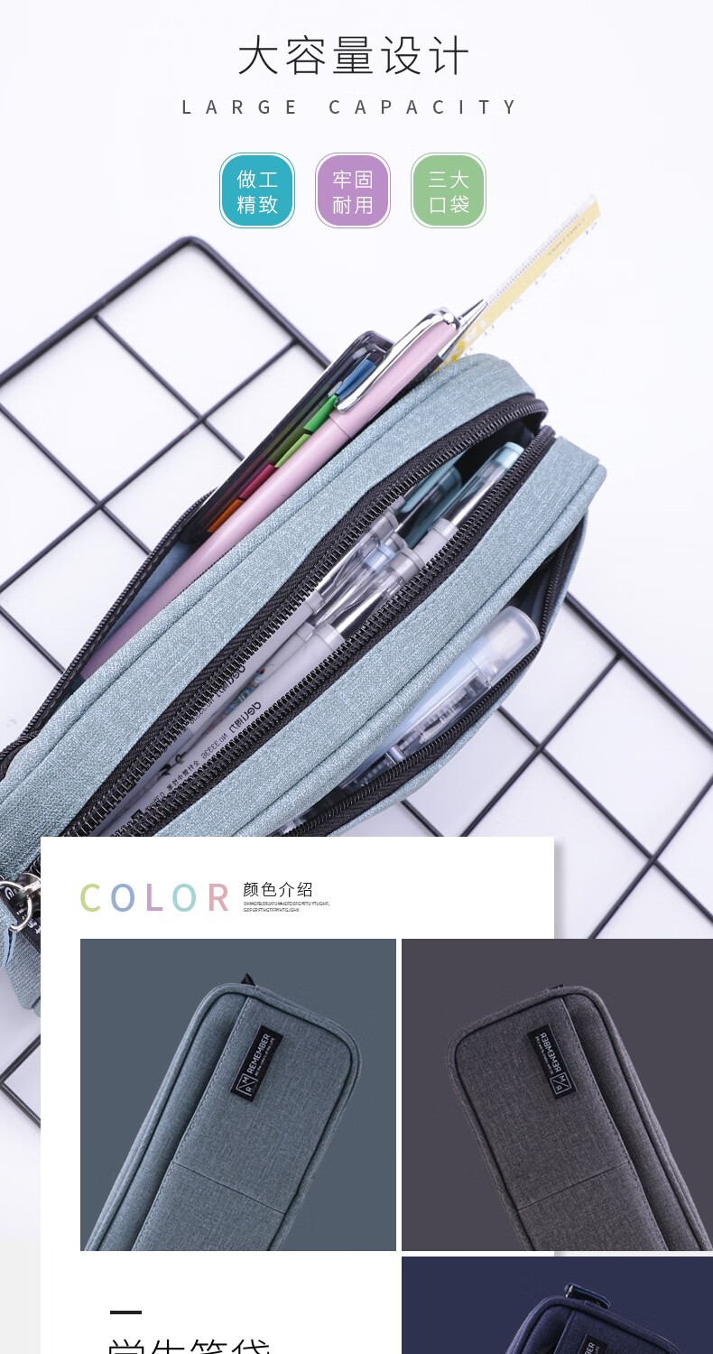 得力(deli) 多層大容量仿亞麻筆袋 深藍色66782