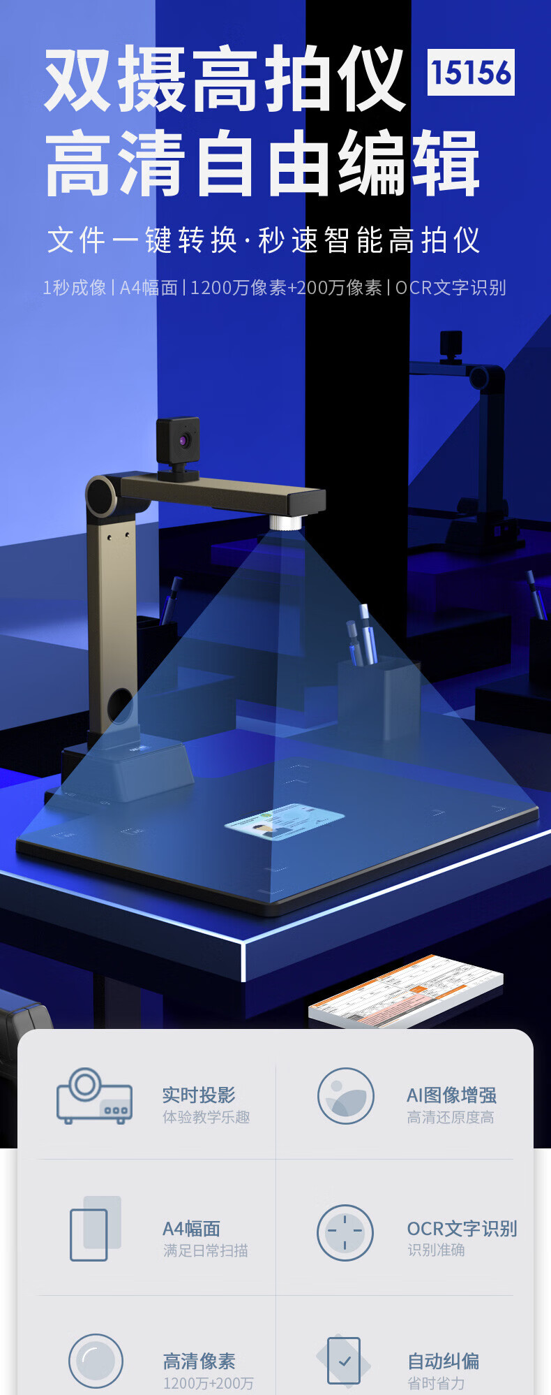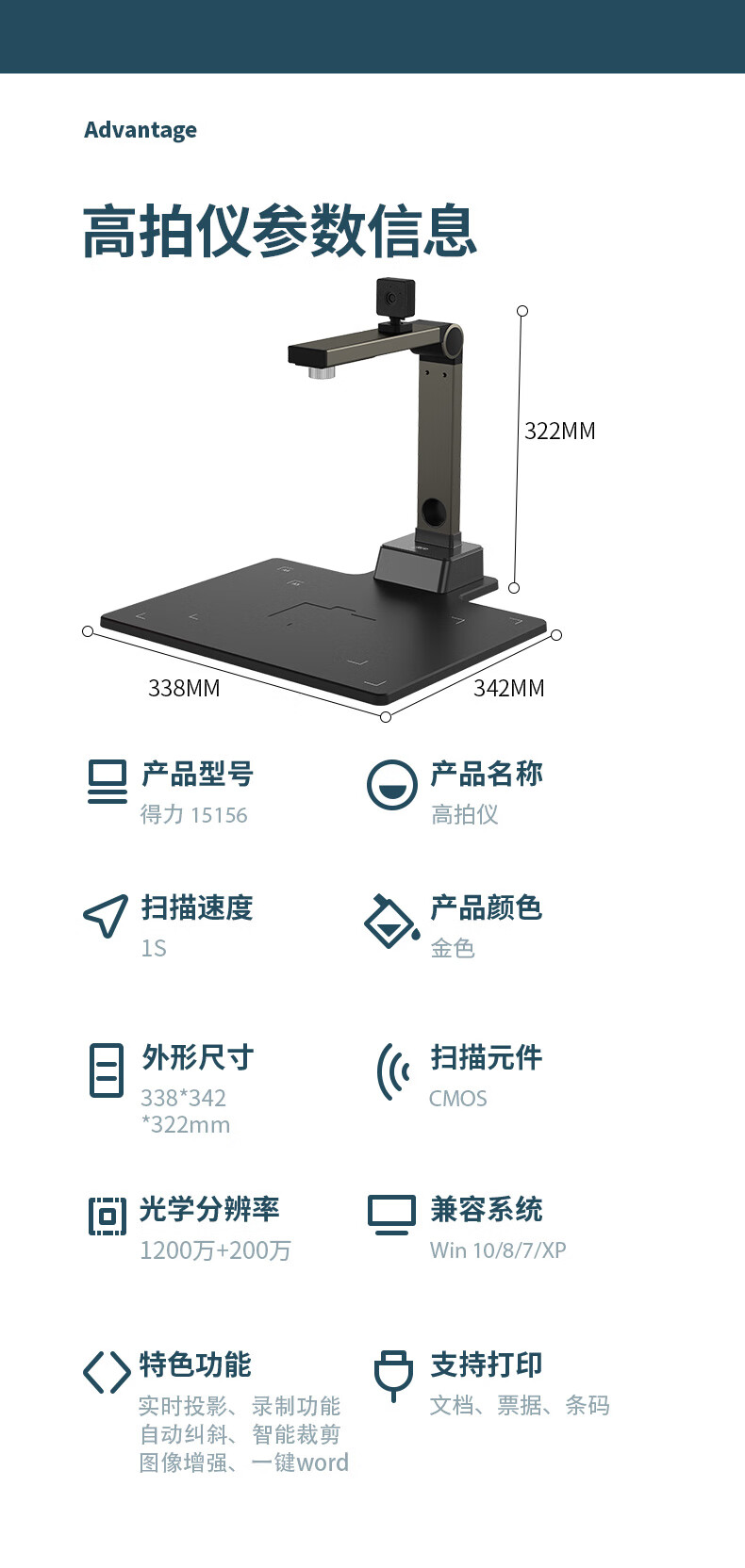 得力(deli)高拍儀 1200+200萬(wàn)A4硬底座高 15156