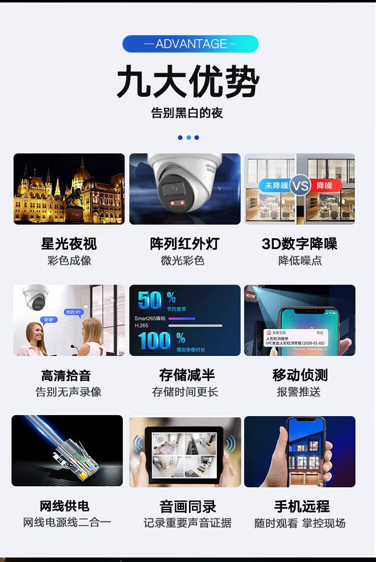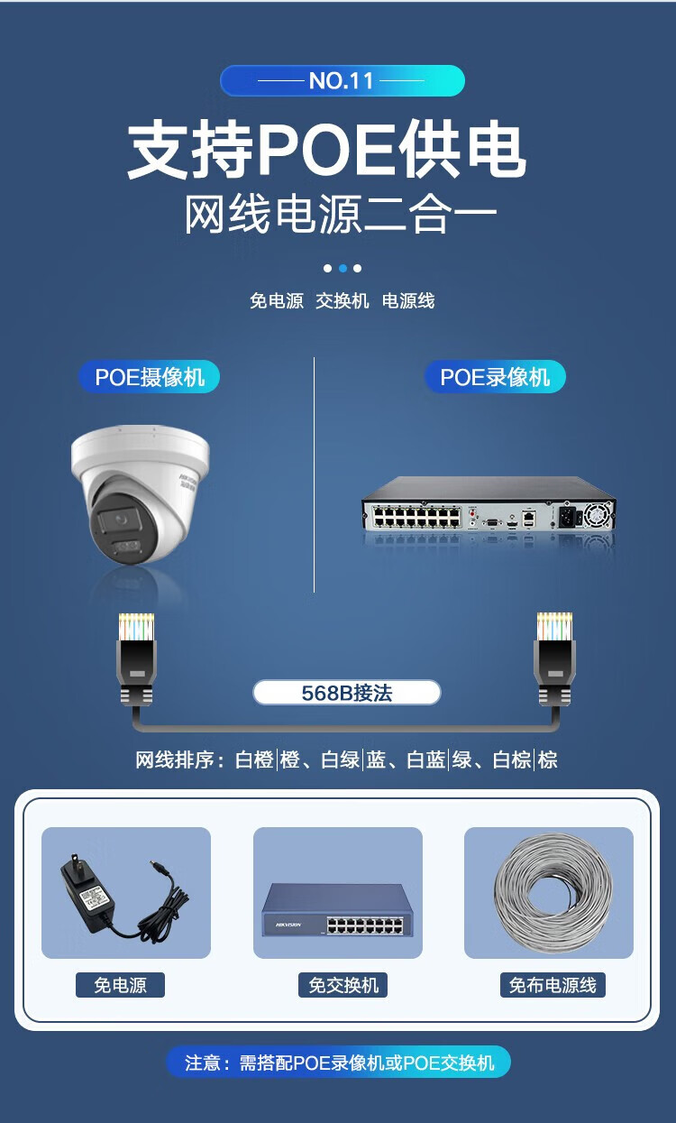 海康威視 400萬星光級紅外海螺型高清POE攝像機套裝 DS-2CD3346WDV3-I 4mm(攝像頭20個 錄像機1臺 8T硬盤2個)