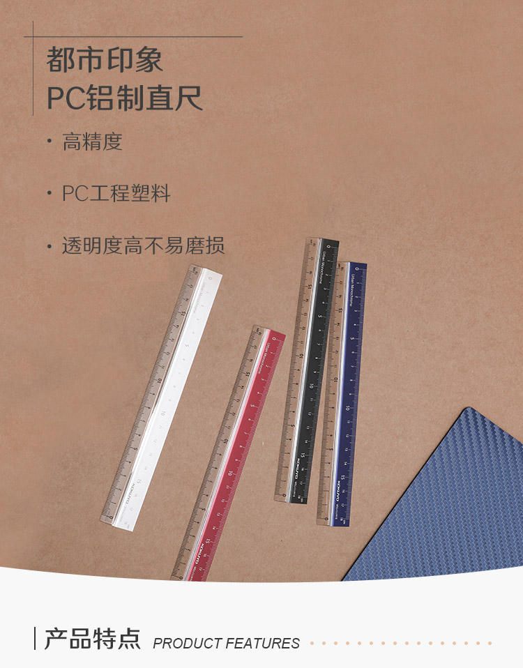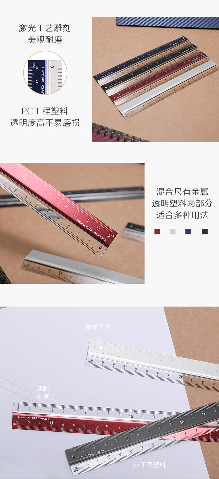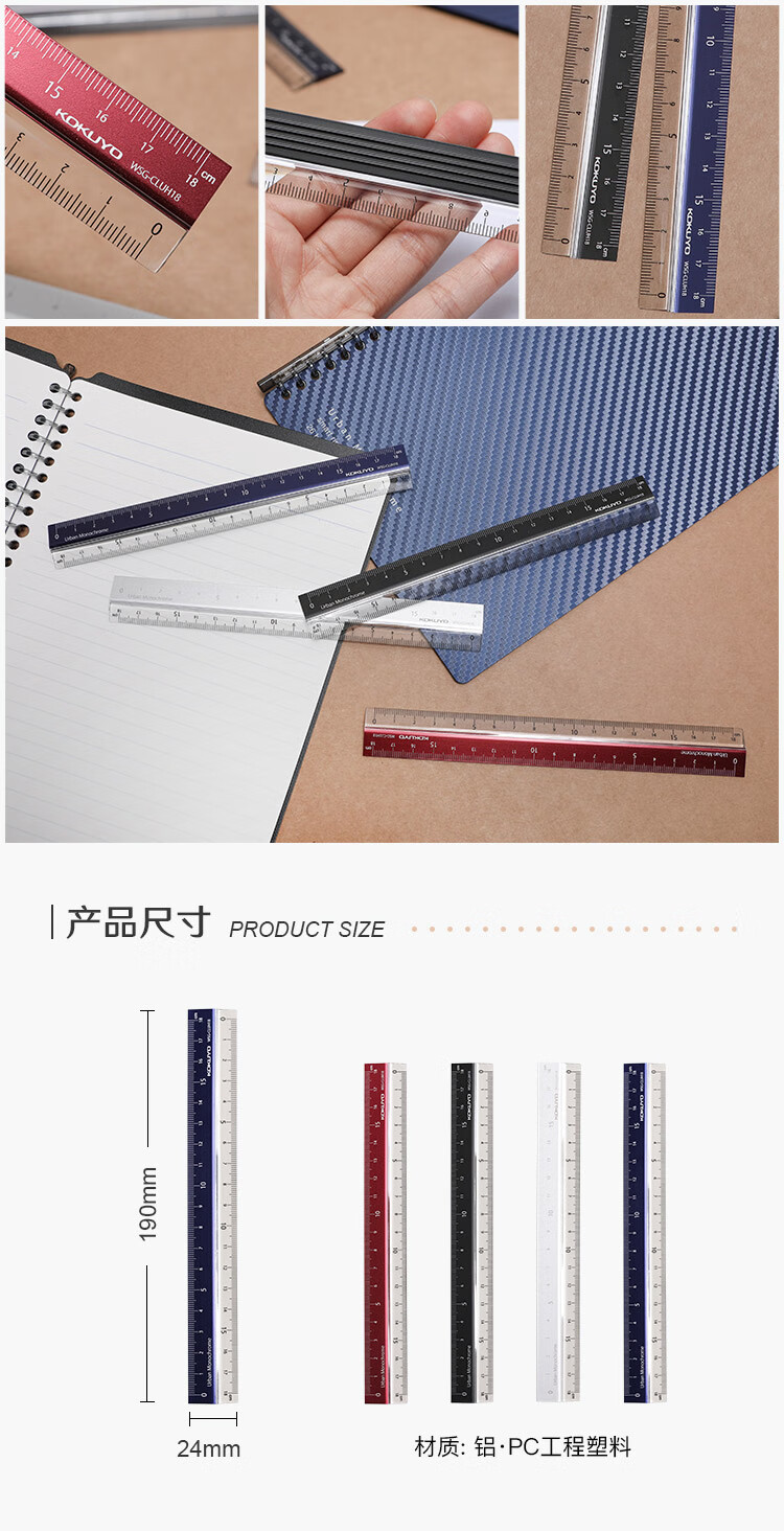 國譽(KOKUYO)都市印象學生高考PC鋁制直尺(18cm)190×24×3.5mm黑色 1個裝 WSG-CLUH18D