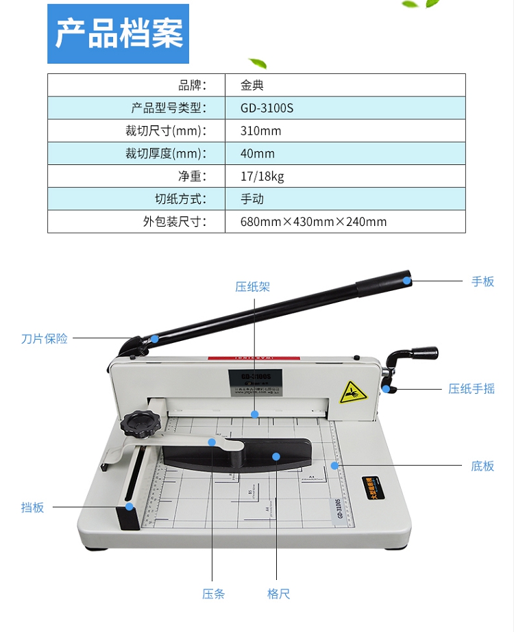 金典(Golden) GD-3100S 手動(dòng)裁紙機(jī)/厚層切紙機(jī)