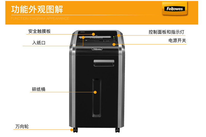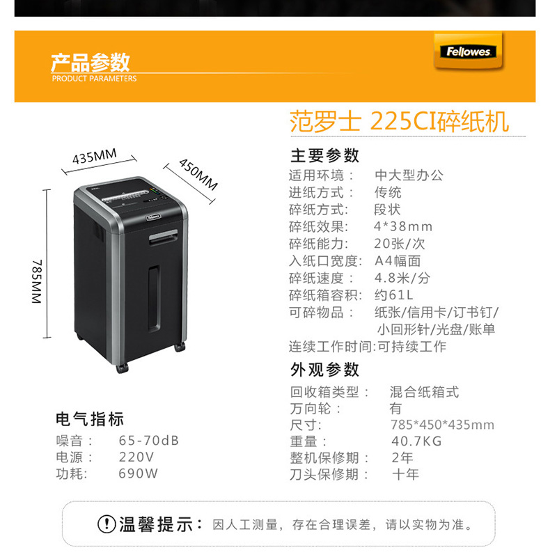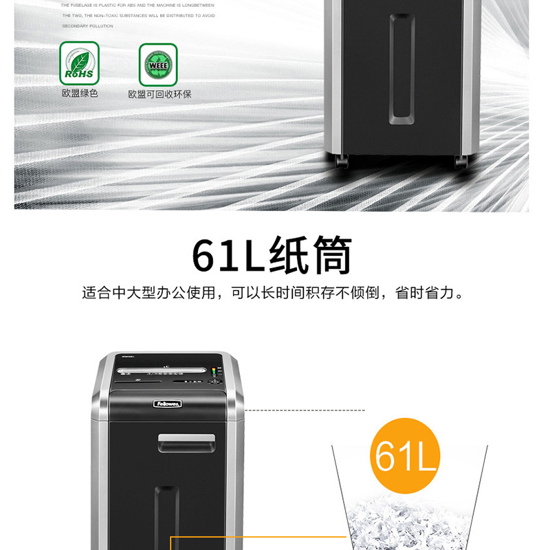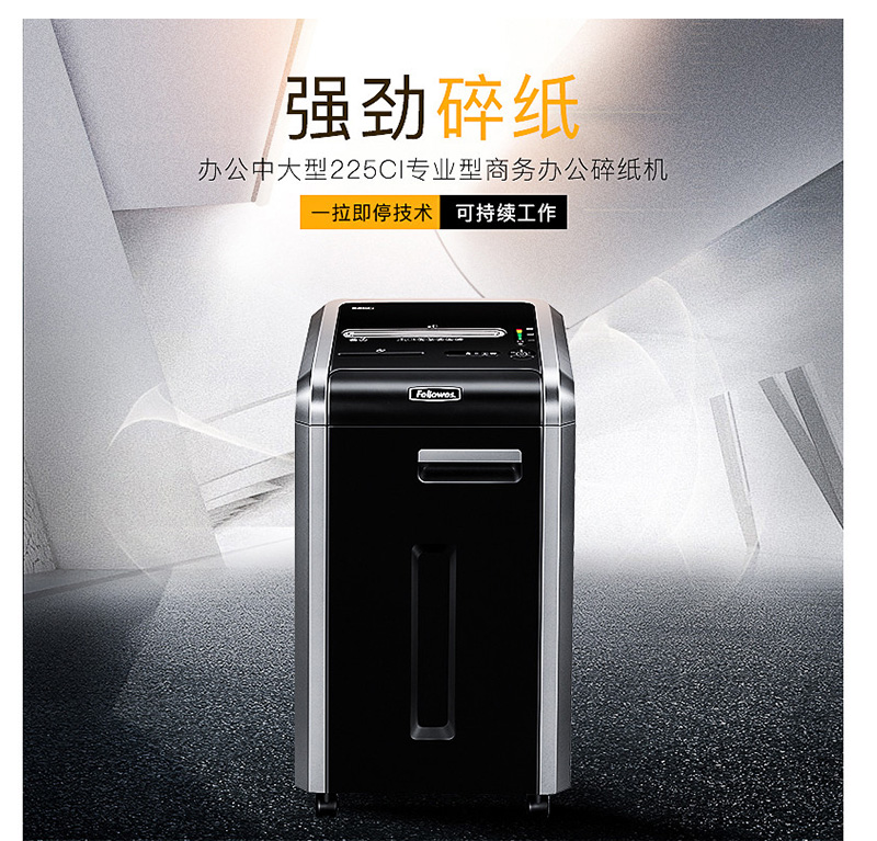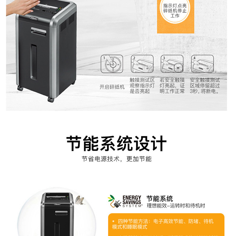 范羅士(Fellowes) 225Ci 商用辦公碎紙機(強勁不卡紙/安全觸停/節(jié)能靜音/單次碎紙20張)