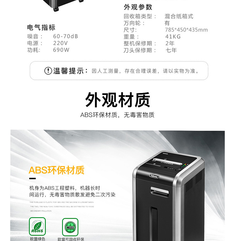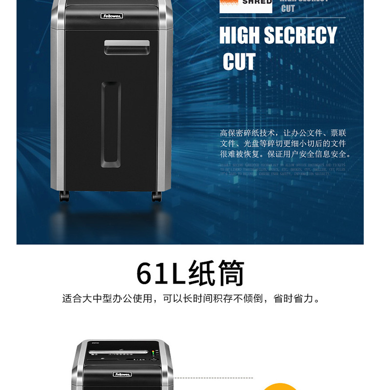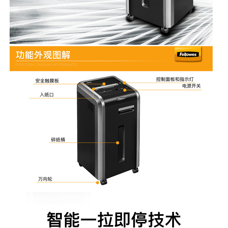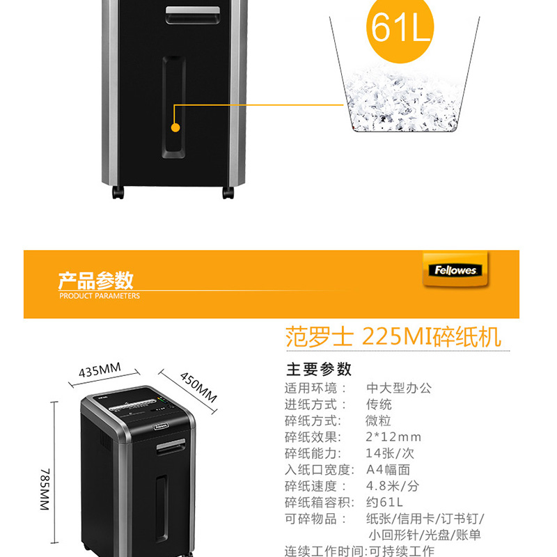 范羅士(Fellowes) 225Mi 大型商用辦公碎紙機(61L大容量/單次碎紙14張)