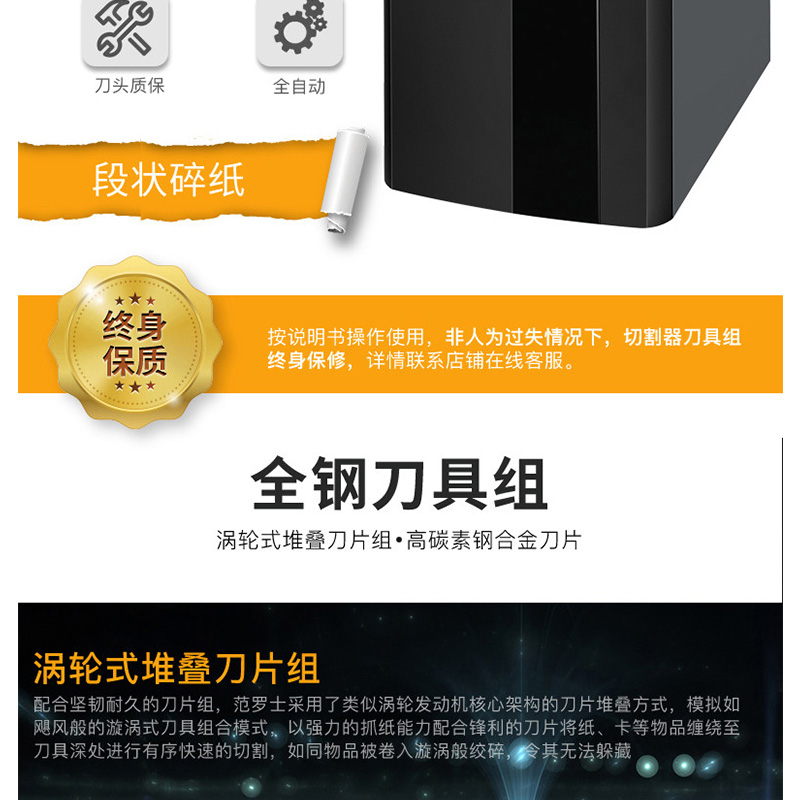 百年美國品牌,全鋼刀具組持久耐用!解放雙手,不用拆釘。 60.5L大容量碎紙實(shí)力派! ?
