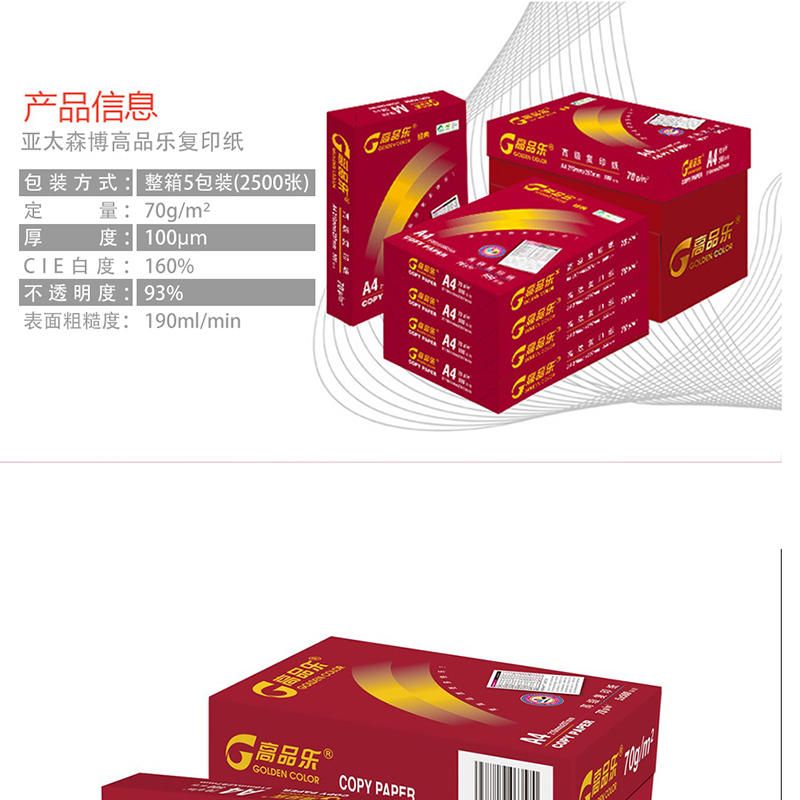 高品樂(lè)(GOLDEN COLOR) A4 70G 復(fù)印紙 500張/包(銷(xiāo)售單位:箱) (5包/箱)