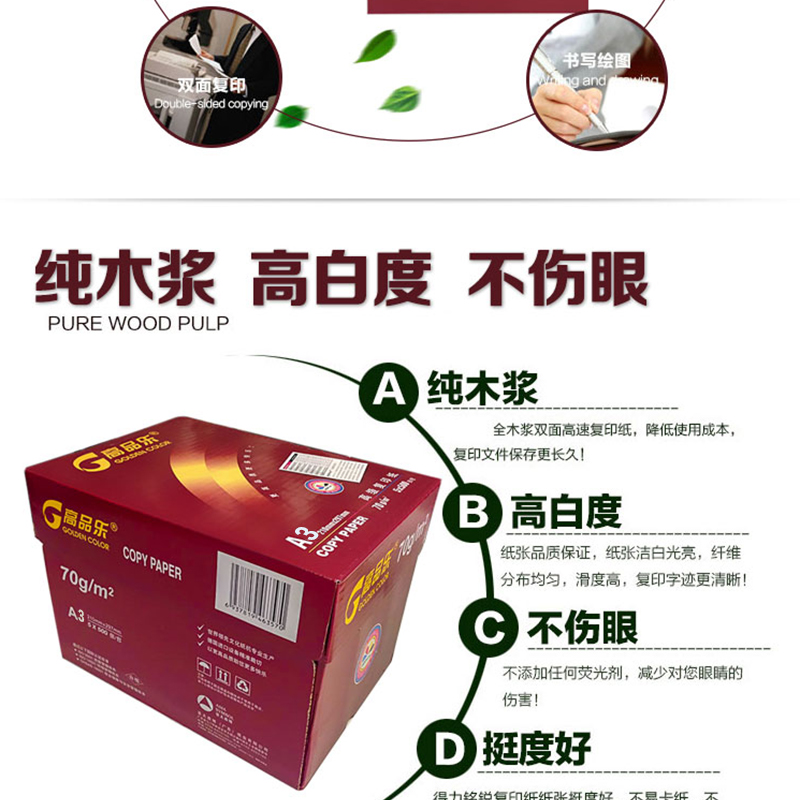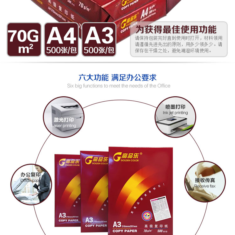 高品樂(GOLDEN COLOR) A3 70G 復(fù)印紙 500張/包(銷售單位:箱) (5包/箱)