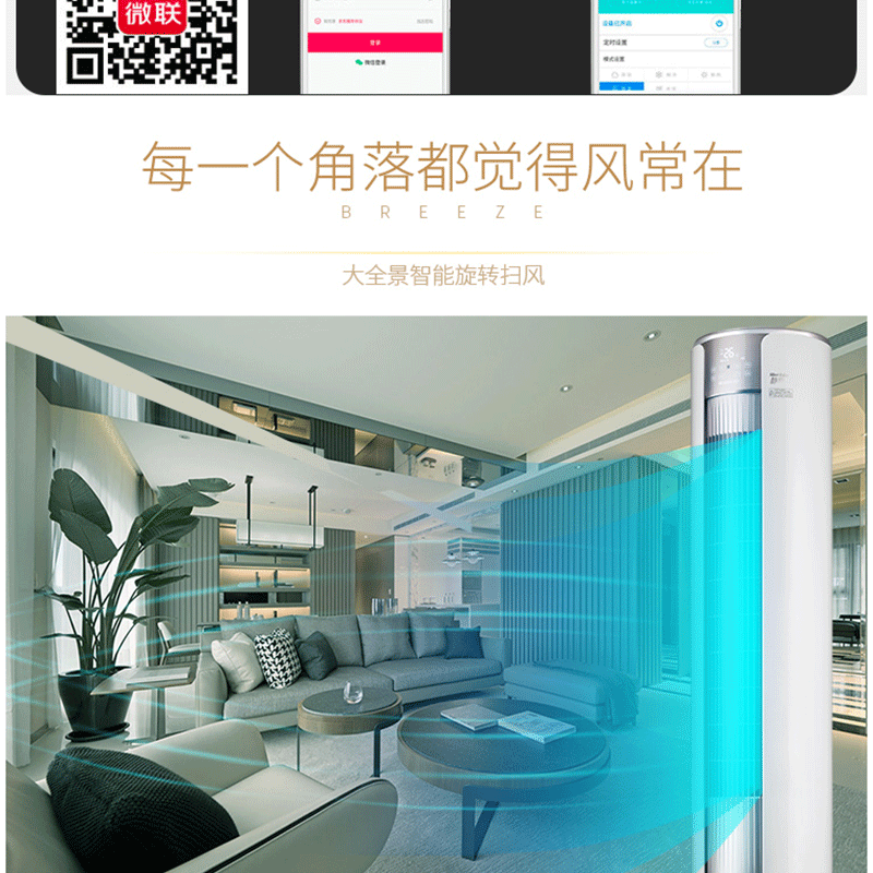 格力(GREE) 3匹 變頻 靜享 微聯(lián)智能 冷暖圓柱柜機(jī)空調(diào)
