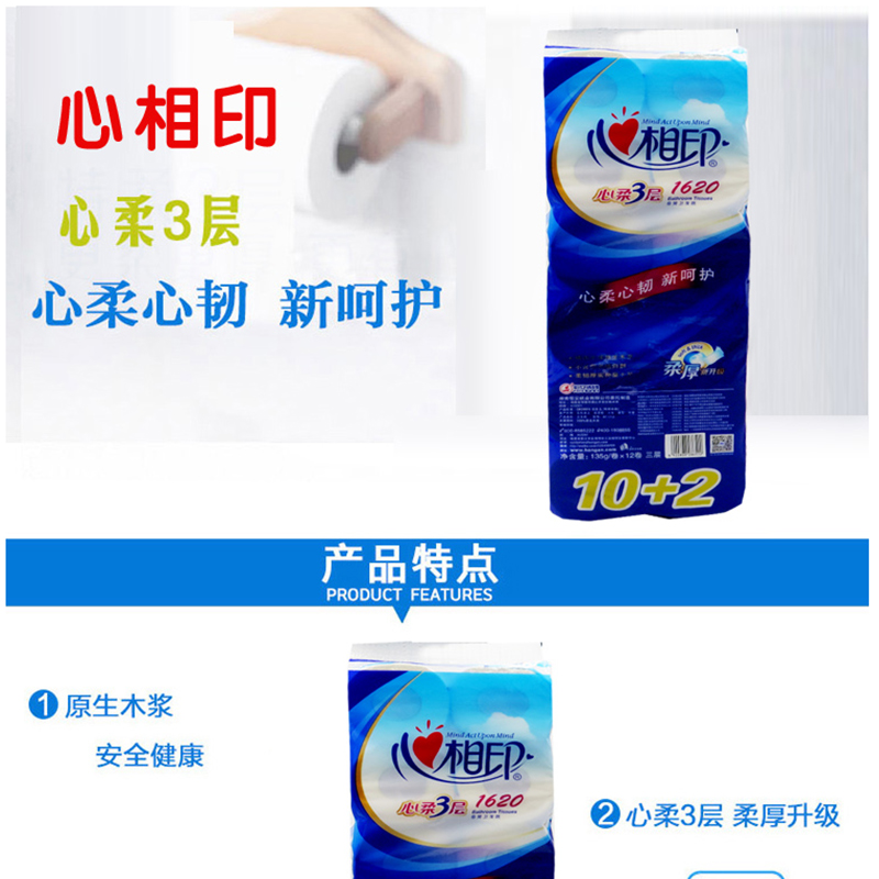 心相印(Mind Act Upon Mind) BT1712 3層卷紙衛(wèi)生紙*135g*12卷
