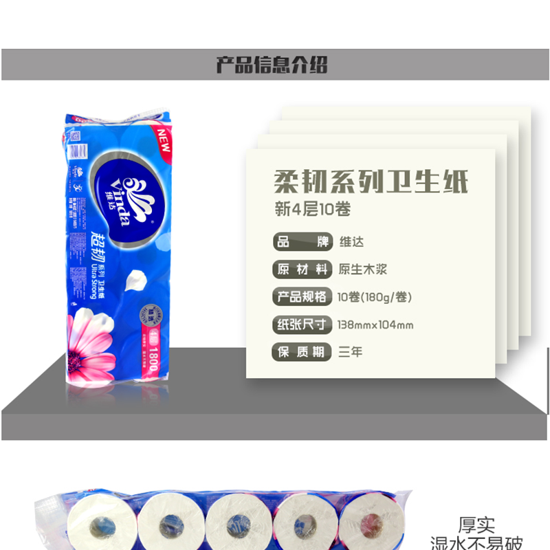 維達(dá)(Vinda) V4688 4層柔韌系列卷紙衛(wèi)生紙 180g x 10卷