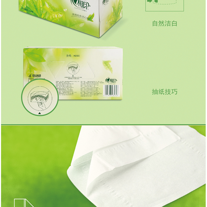 心相?。∕ind Act Upon Mind) H200 茶語系列盒裝抽紙面巾紙餐巾紙200抽*2層*3盒
