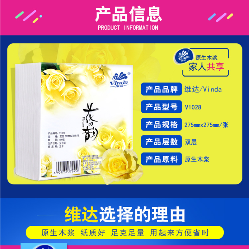 維達(Vinda) V1028 花之韻雙層餐巾紙275mmX275mm