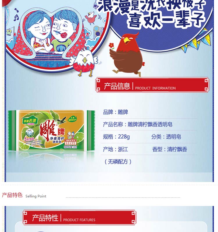 雕牌 青檸飄香透明皂/洗衣皂252g 深層去漬(單塊裝)