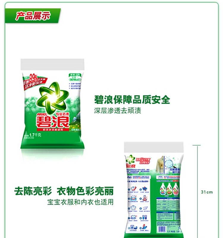 碧浪 專業(yè)去漬無(wú)磷自然清新型洗衣粉1.7kg