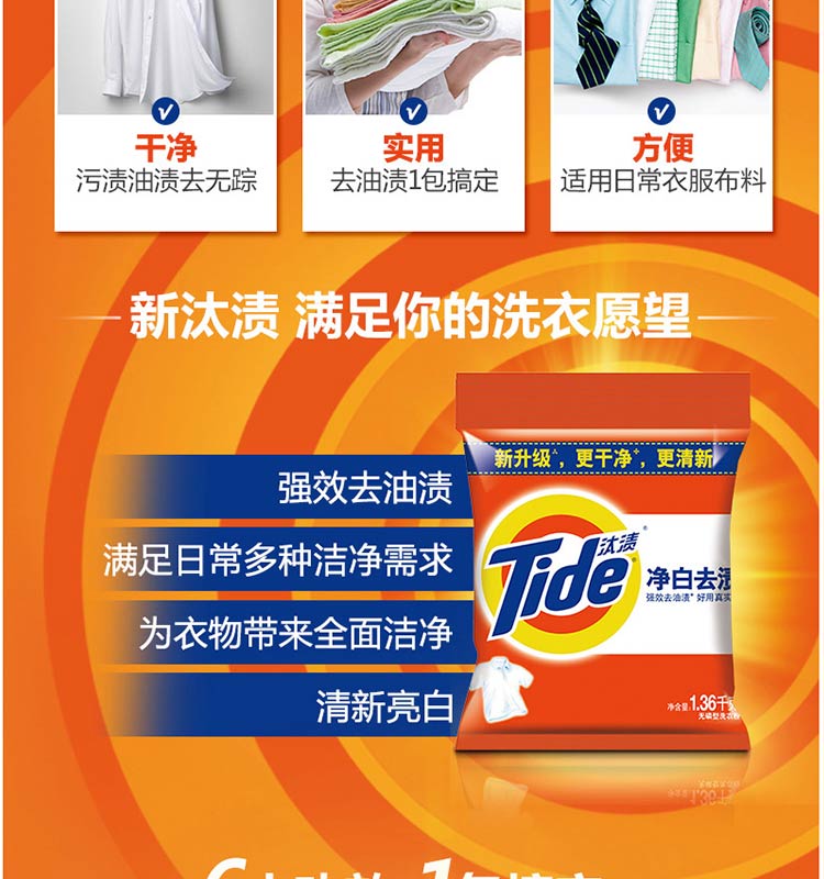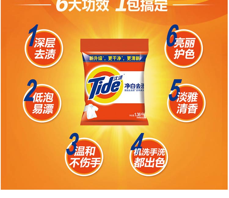 汰漬(TIDE) 凈白去漬 無(wú)磷洗衣粉 1.36kg