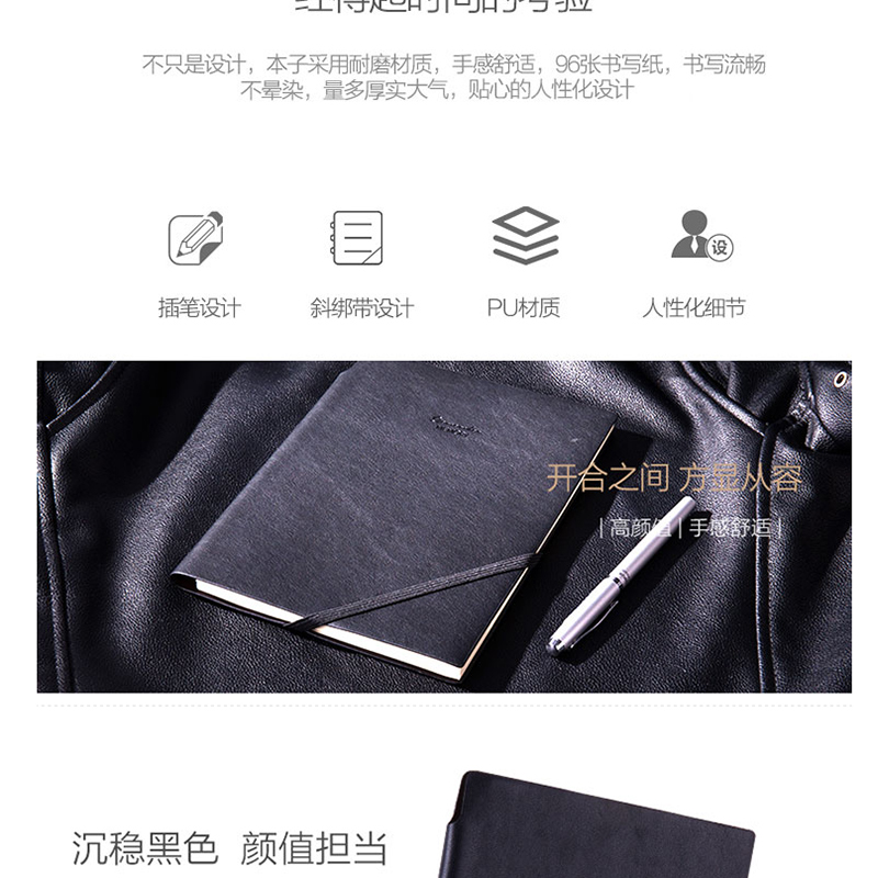得力(deli) 22215 PU材質(zhì)商務(wù)綁帶皮面本/記事本 25K/96頁(yè) 黑色