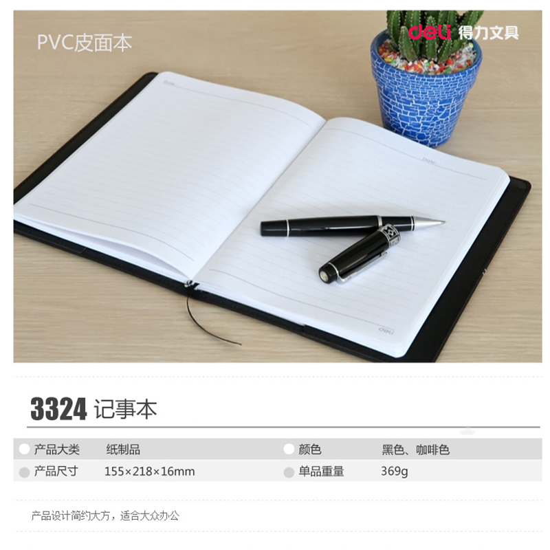 得力(deli) 3334 簡約扣帶皮面本/記事本 18K/114頁 黑色