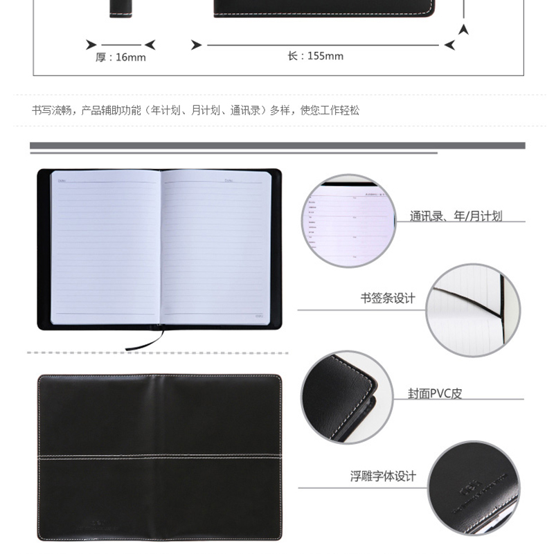 不只是設(shè)計(jì),皮面耐磨荔波紋理PU皮,手感舒適。內(nèi)頁采用道林紙,書寫流暢。 ?