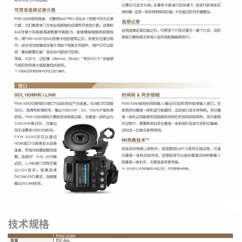 索尼(SONY) PXW-X280 手持式存儲卡攝錄一體機 3CMOS 新聞采訪/紀錄片制作/電視臺推薦型號