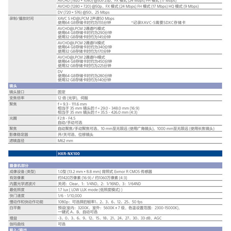 索尼(SONY) HXR-NX100 專業(yè)便攜式攝錄一體機