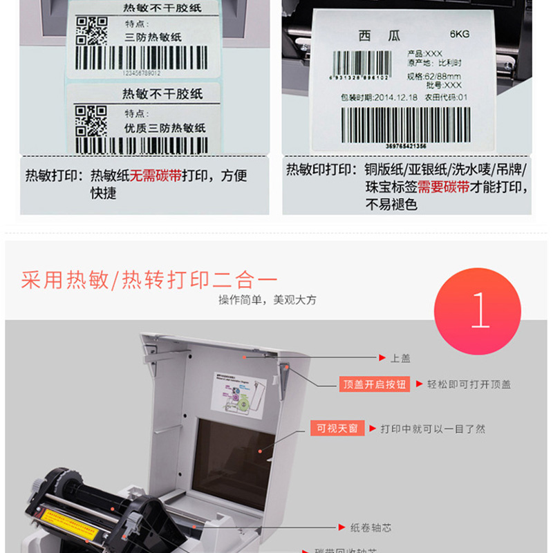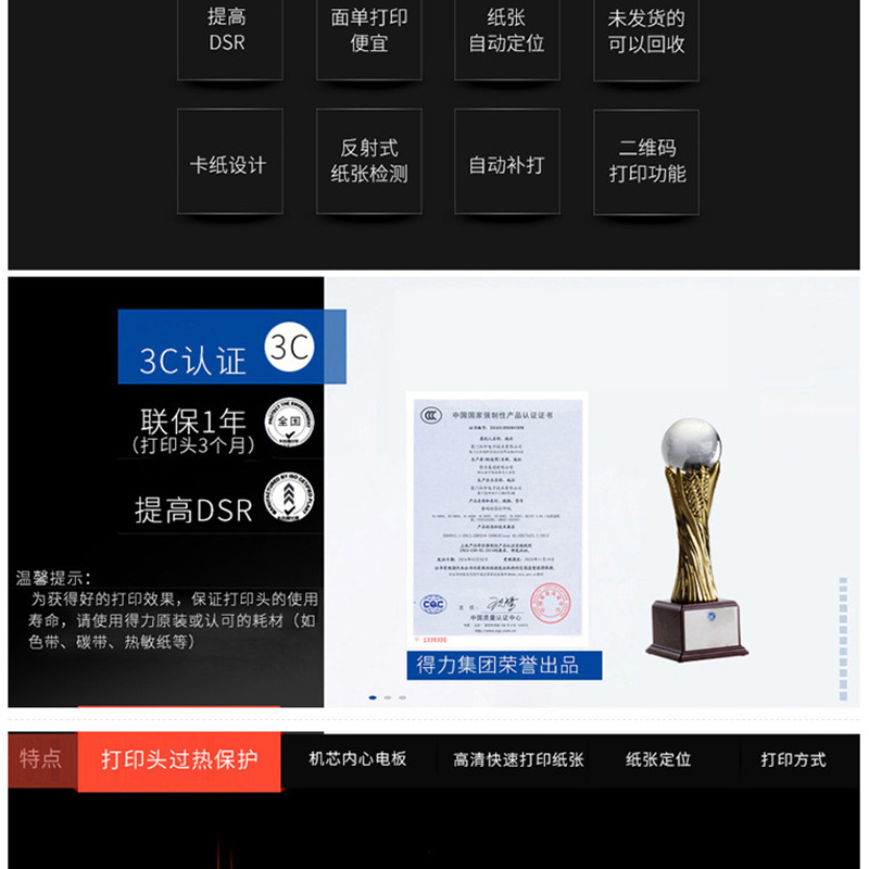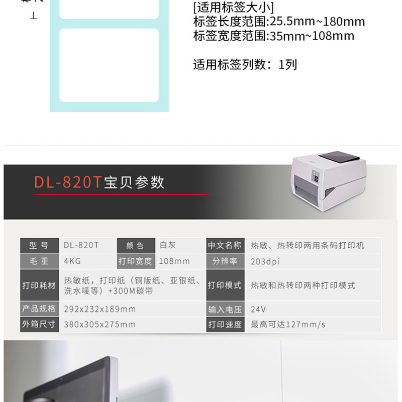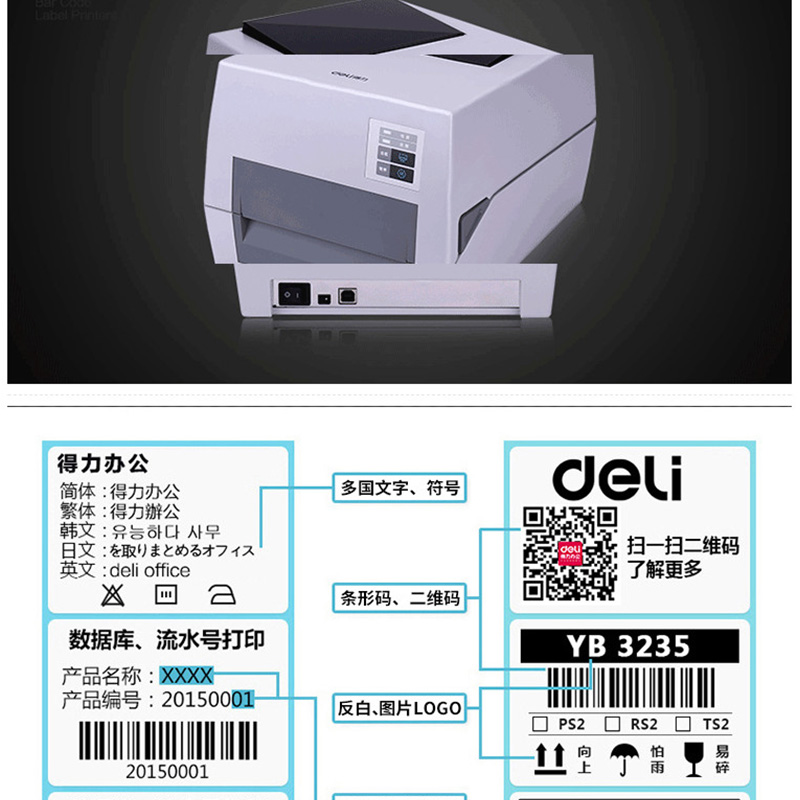 得力(deli) DL-820T 熱轉(zhuǎn)印標(biāo)簽打印機 熱敏小票條碼不干膠電子面單打印機