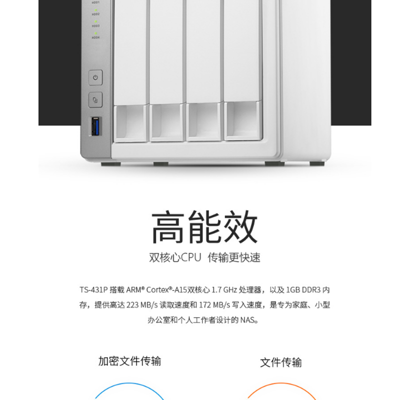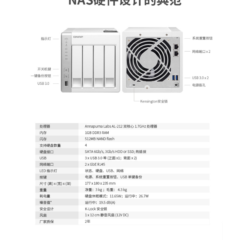 威聯(lián)通(QNAP) TS-431P 1G 內(nèi)存 雙核1.7GHz處理器 2個網(wǎng)絡(luò)端口 4盤位NAS網(wǎng)絡(luò)存儲器 (無內(nèi)置硬盤)