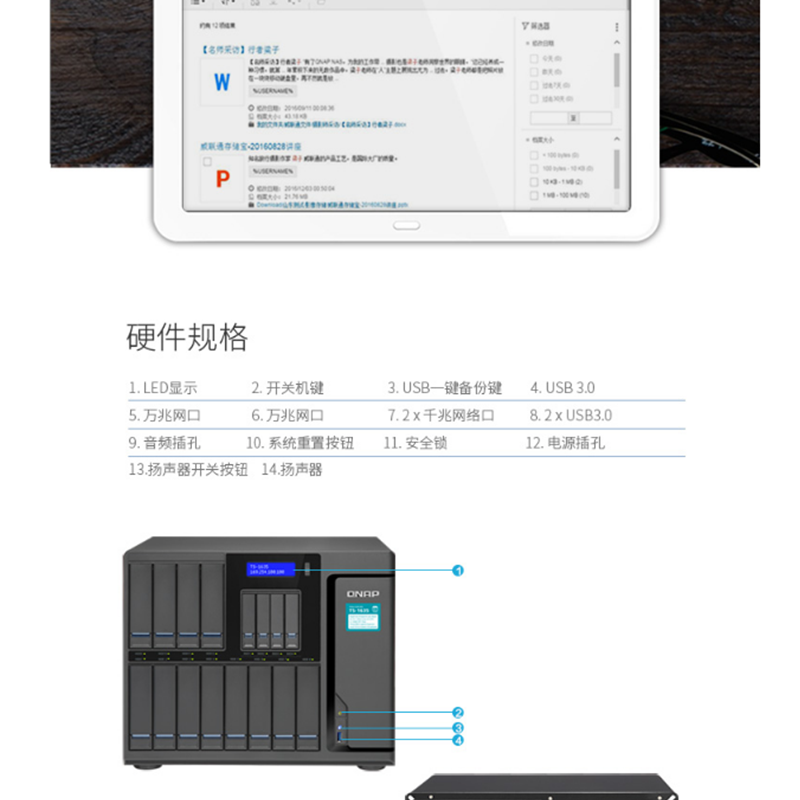 威聯(lián)通(QNAP) TS-1635-4G 十六盤位網(wǎng)絡存儲 四核處理器 內(nèi)建2個10GbE SFP+ 網(wǎng)絡端口 商用級NAS