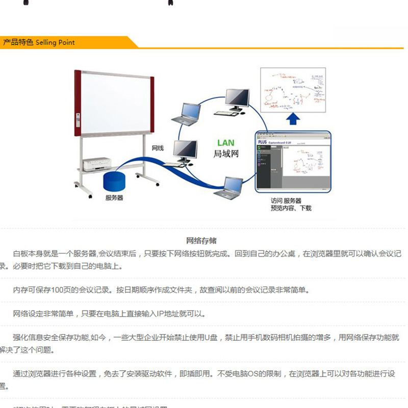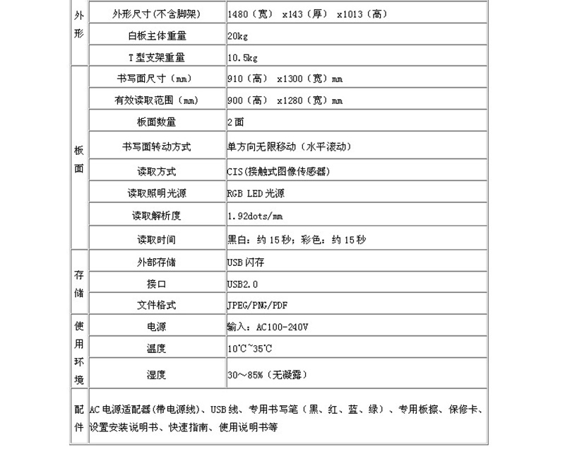 書寫面積:910x1300mm(雙面),彩色打印,U盤存儲(chǔ),USB插槽,板面可貼磁粒,雙向手推,帶網(wǎng)絡(luò)接口 ?