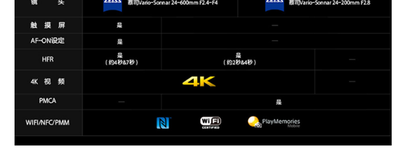 Vario-Sonnar T*鏡頭 F2.8恒定光圈 焦距f=24-200mm 1英寸Exmor R CMOS影像傳感器 ?