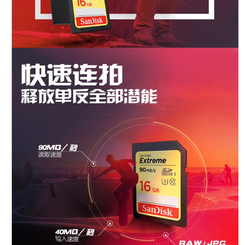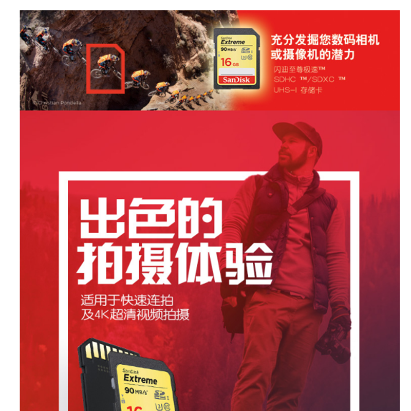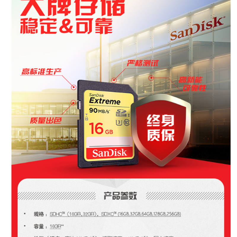 閃迪(SanDisk) 16GB 讀速90MB/s 寫速40MB/s 至尊極速SDHC UHS-I存儲卡 V30 U3 Class10 SD卡