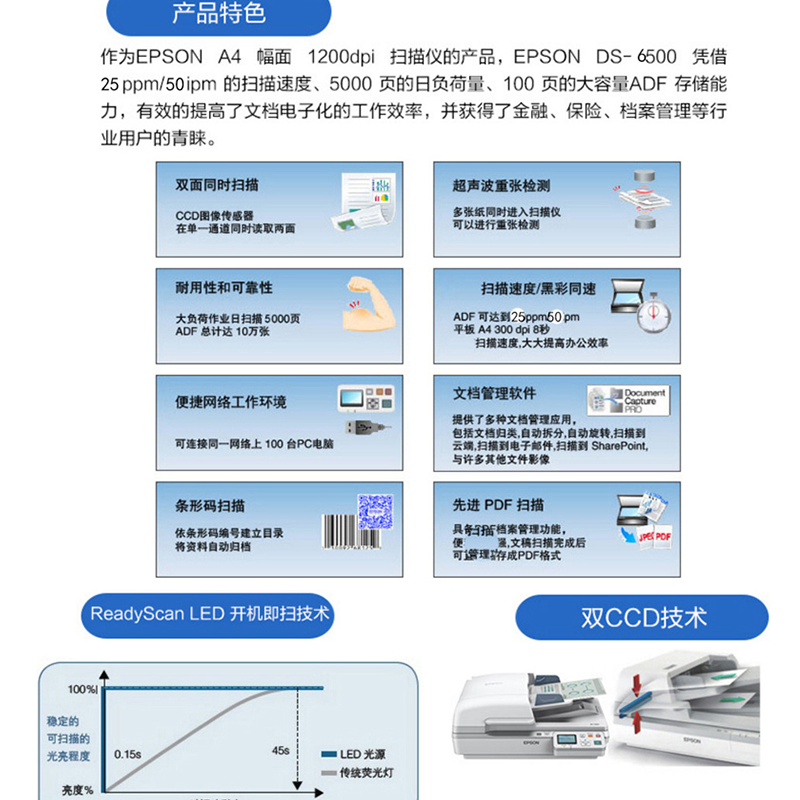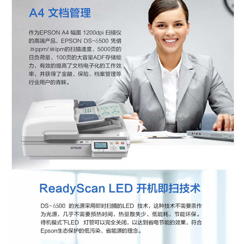 愛普生(EPSON) DS-6500 平板+饋紙式A4文檔高速掃描儀