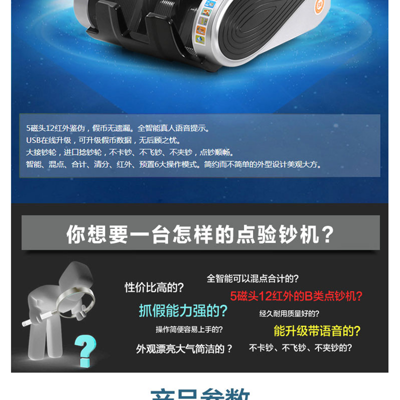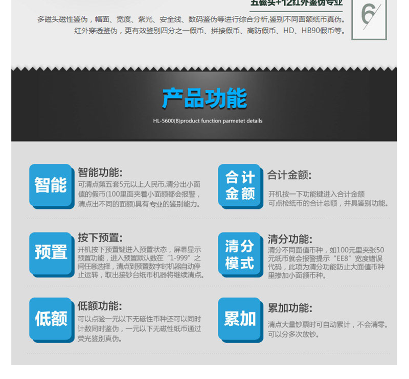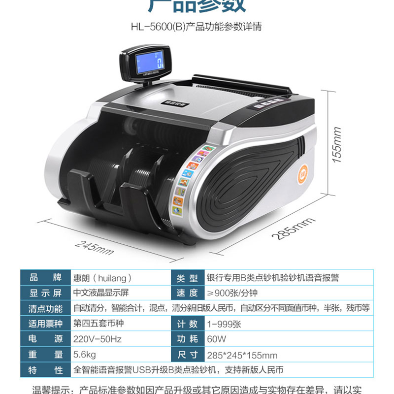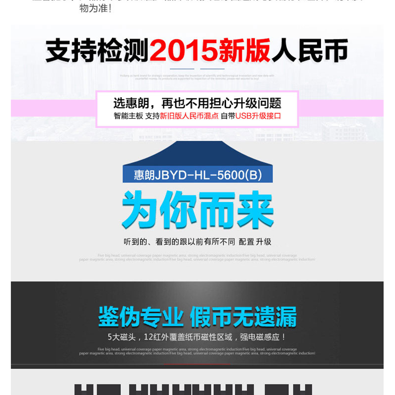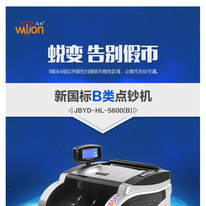 惠朗(wilion) JBYD-5600(B) 智能點(diǎn)鈔機(jī)/驗(yàn)鈔機(jī) 五磁頭6對(duì)紅外語(yǔ)音報(bào)警USB升級(jí)
