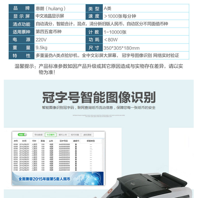 惠朗(wilion) JBYD-HL-N99A A類全智能點鈔機/驗鈔機 冠字號圖像識別 網(wǎng)絡(luò)實時驗證