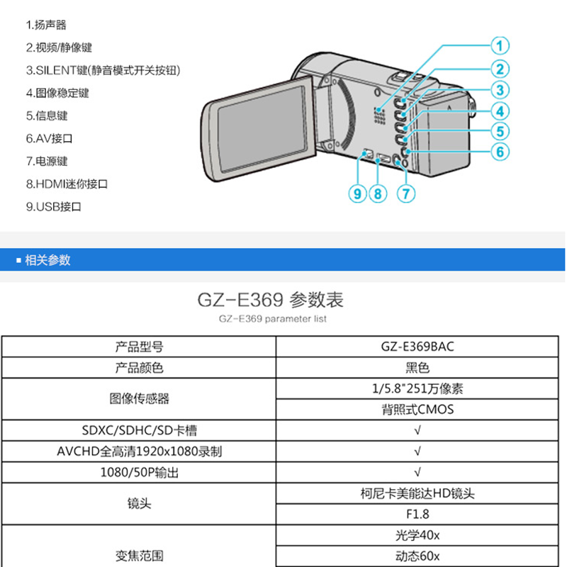 JVC(杰偉世) GZ-E369 高清數(shù)碼攝像機(jī) 閃存式DV
