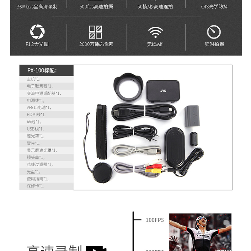 JVC(杰偉世) GC-PX100BAC 高速/高清攝像機(jī) 體育/運(yùn)動/賽事攝像機(jī) 黑色