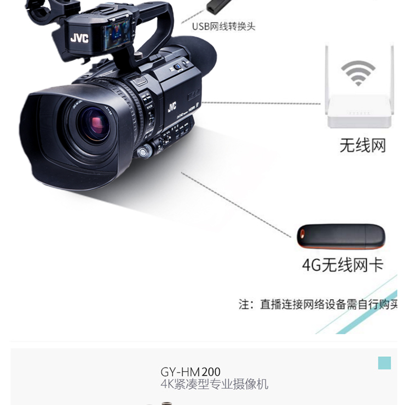JVC(杰偉世) GY-HM200EC 4K手持專業(yè)攝像機(jī) 內(nèi)置編碼器/4K/sdi輸出
